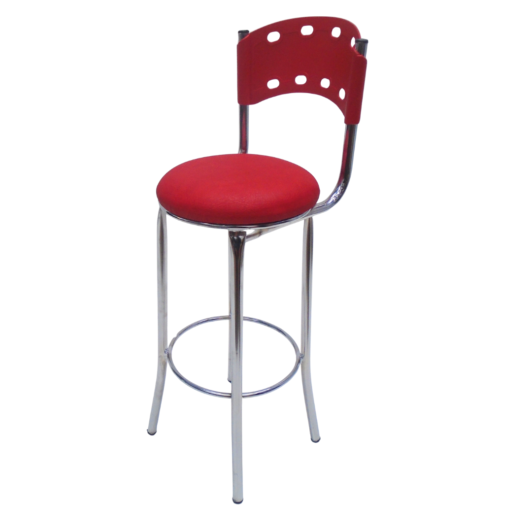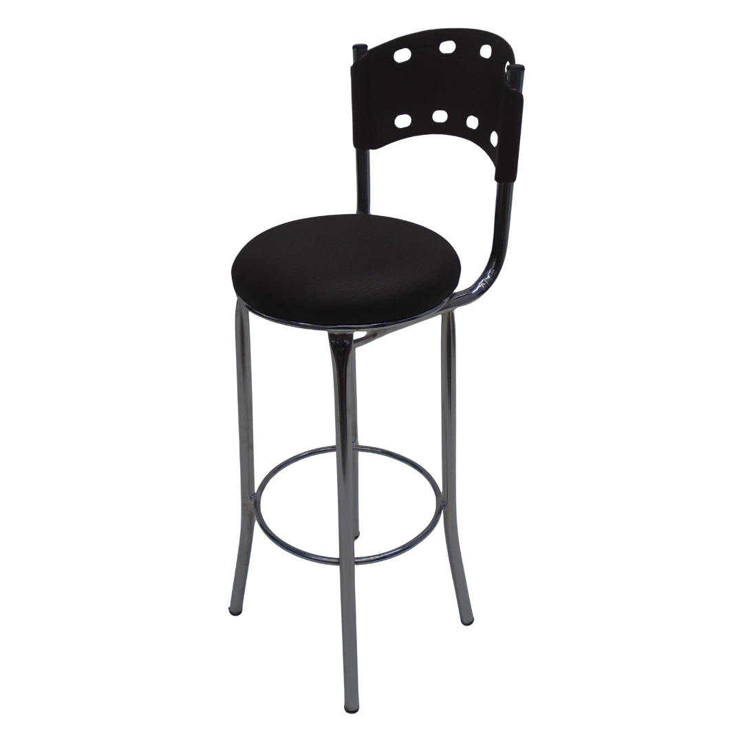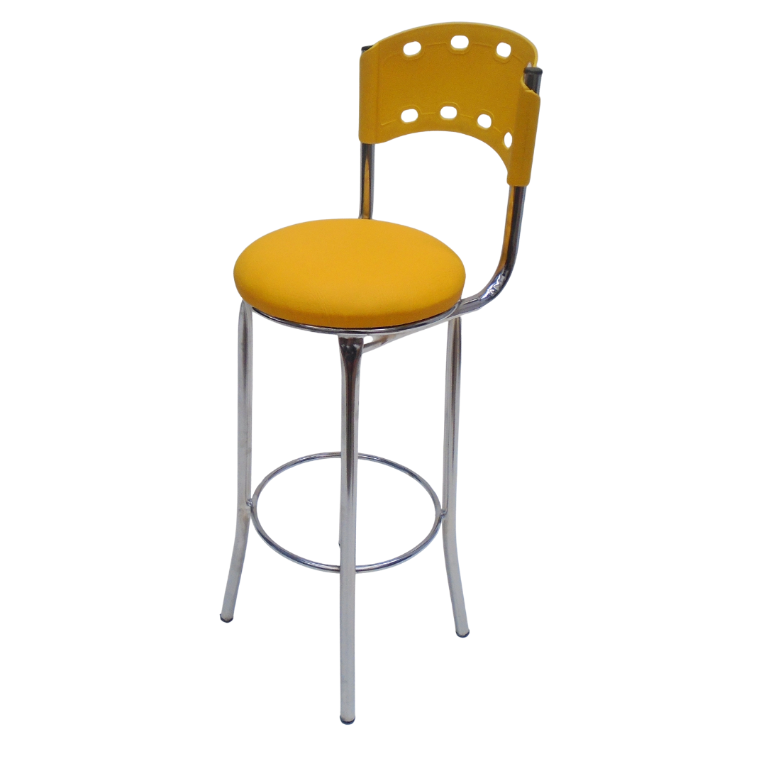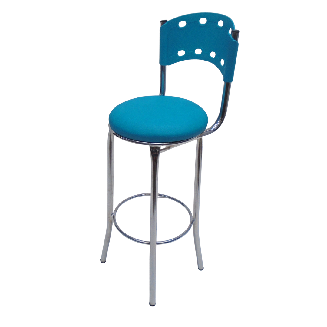 Estructura metálica cromada, sentadero tapizado y espaldar en polipropileno, con protección contra rayos UV