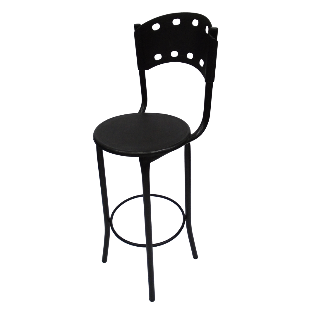 Estructura metálica pintada en color negro, sentadero y espaldar en polipropileno, con protección contra rayos UV