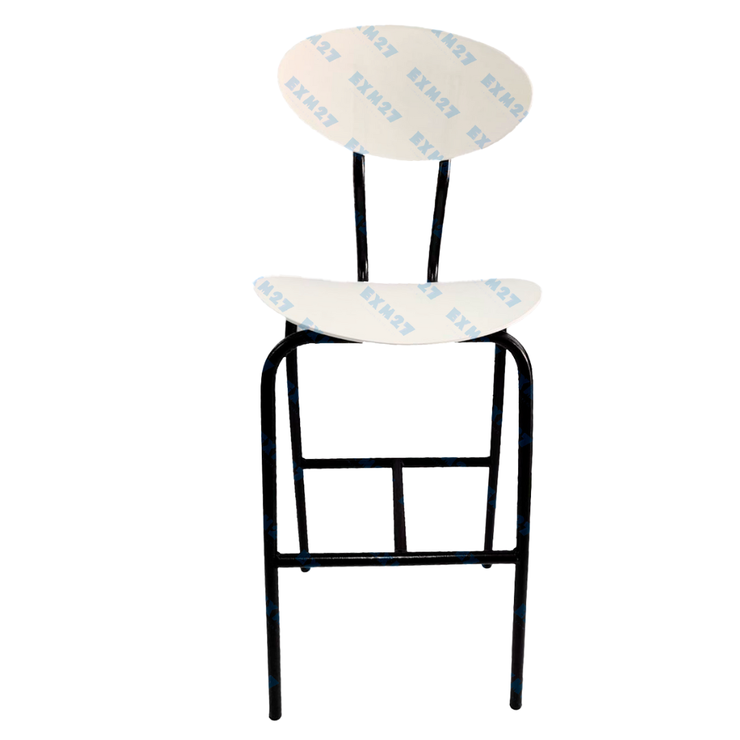 Estructura metálica pintada en color negro, sentadero y espaldar en polipropileno, con protección contra rayos UV