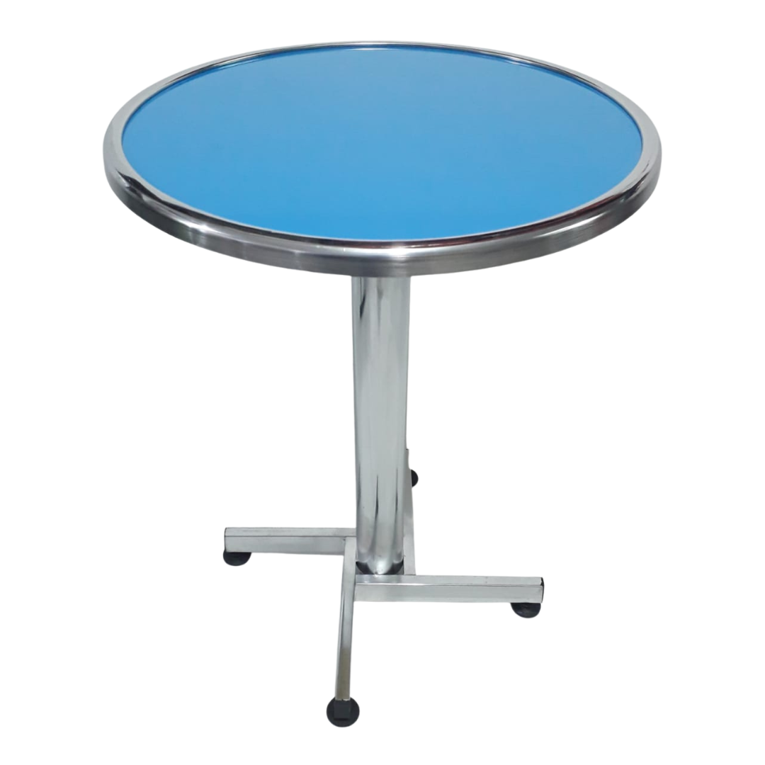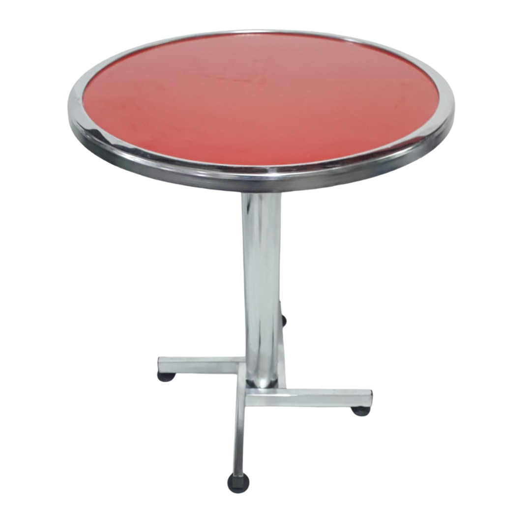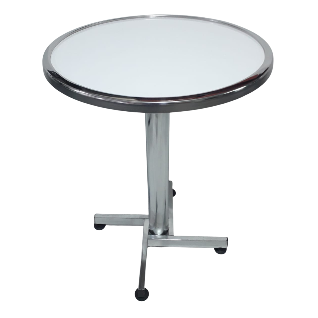 Base estructura metálica cromada con tapa en madera forrada en formica con borde en acero