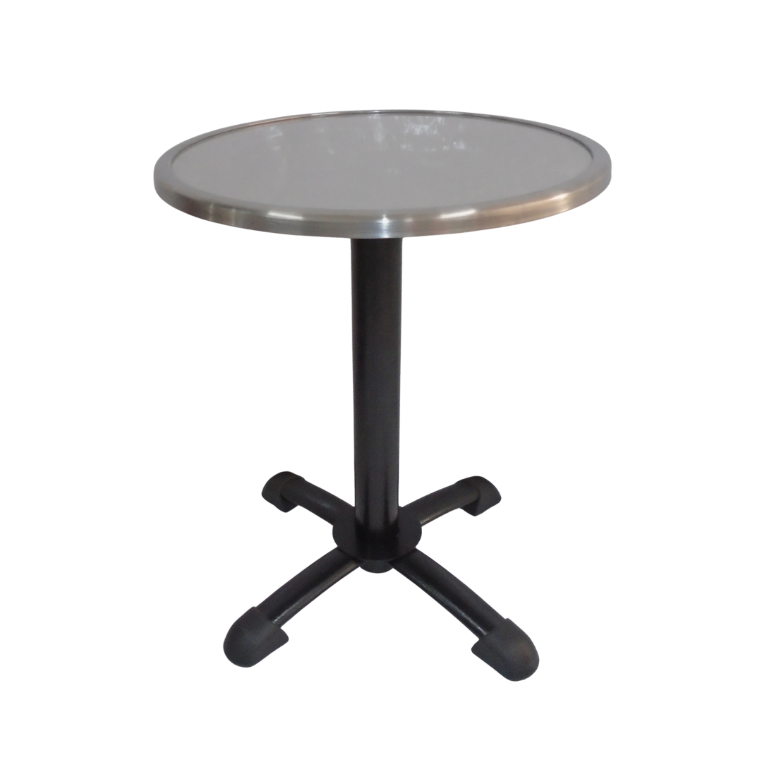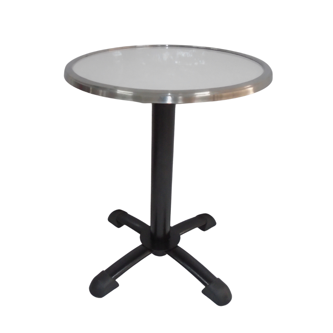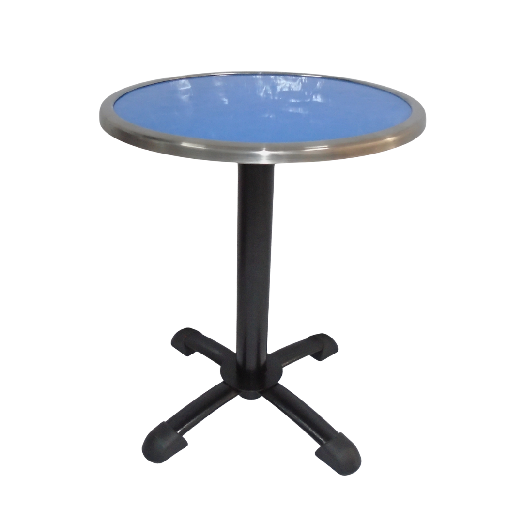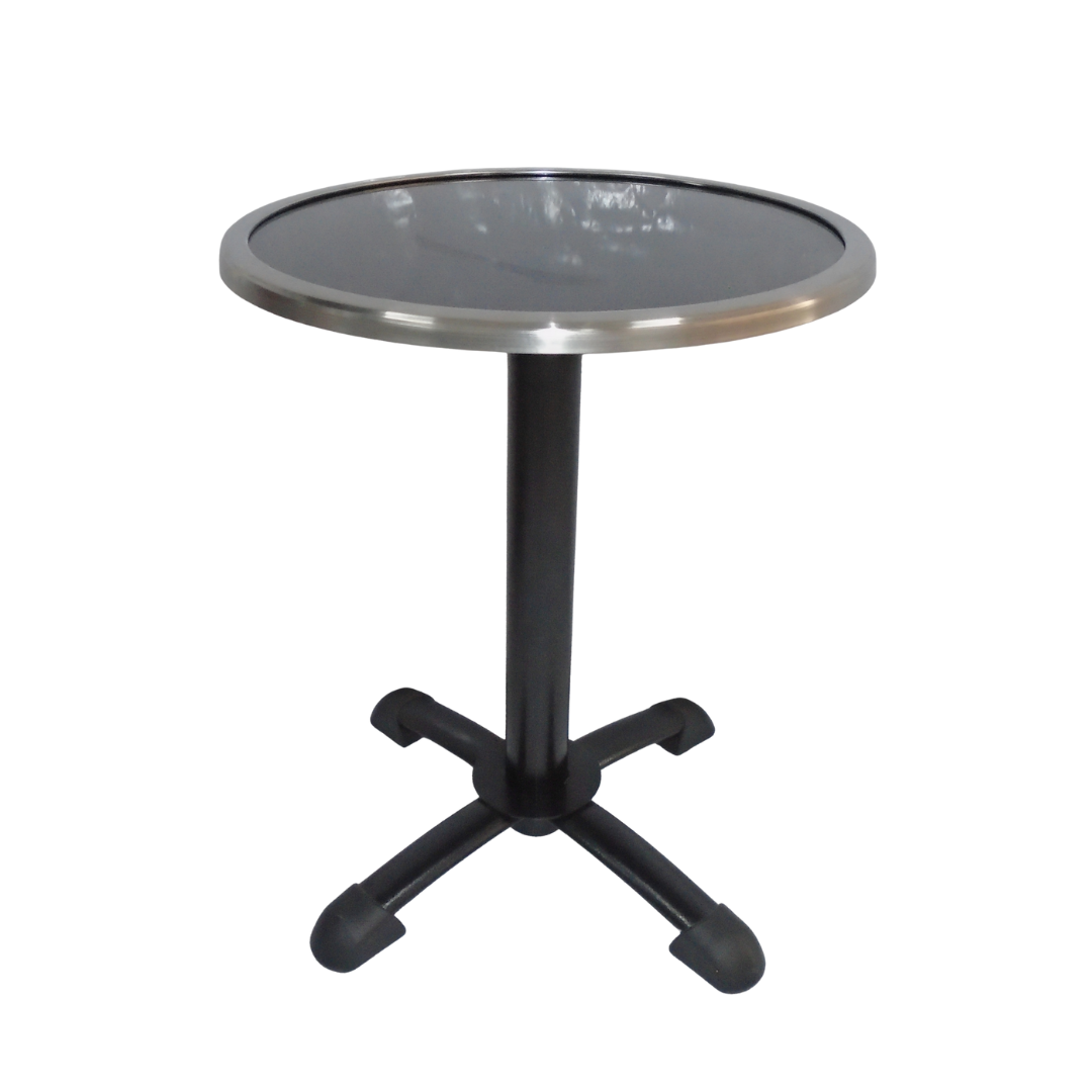 Base estructura metálica pintada en color negro con tapa en madera forrada en formica con borde en acero