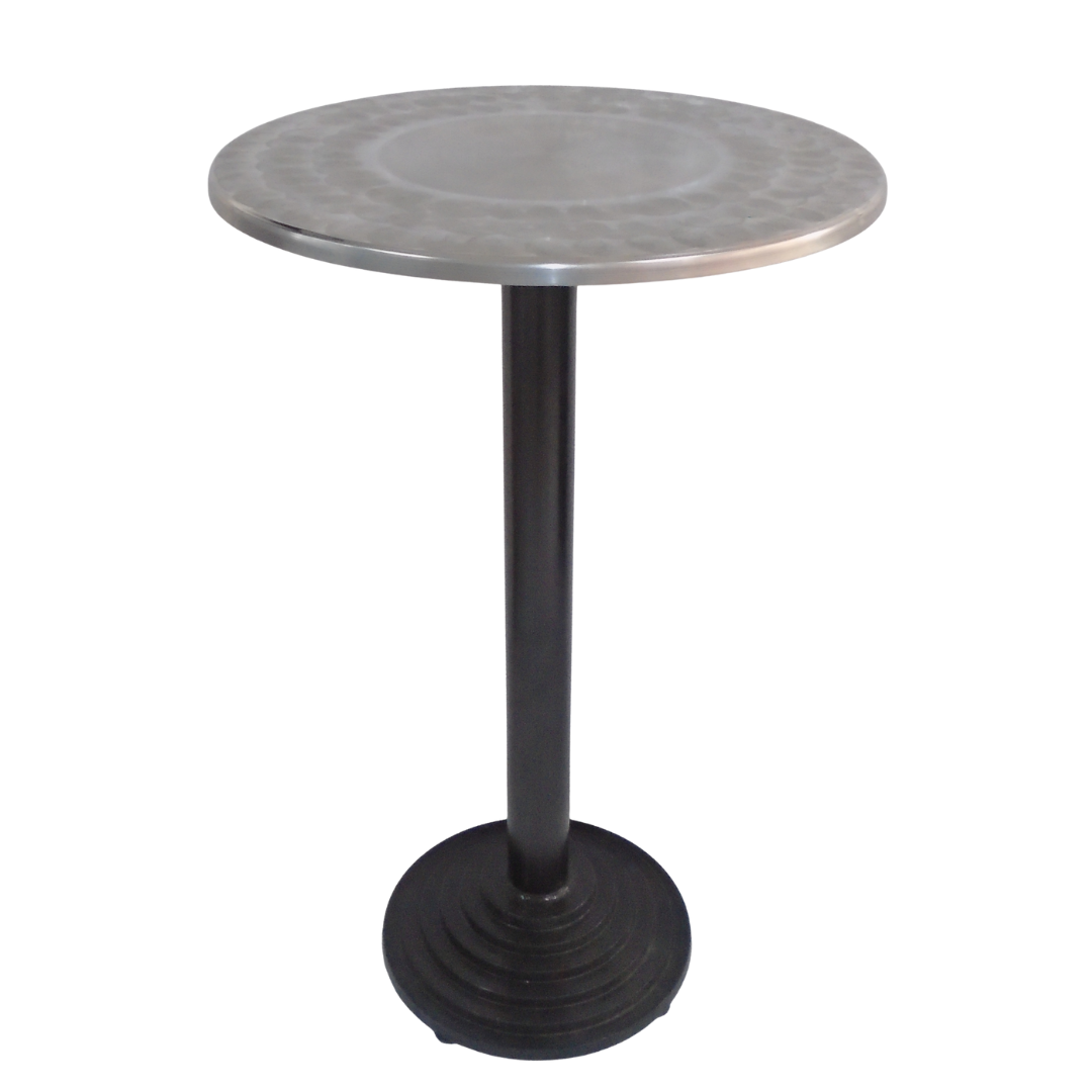 Base estructura metálica pintada en negro de 40cm de diametro y tapa en madera forrada en acero