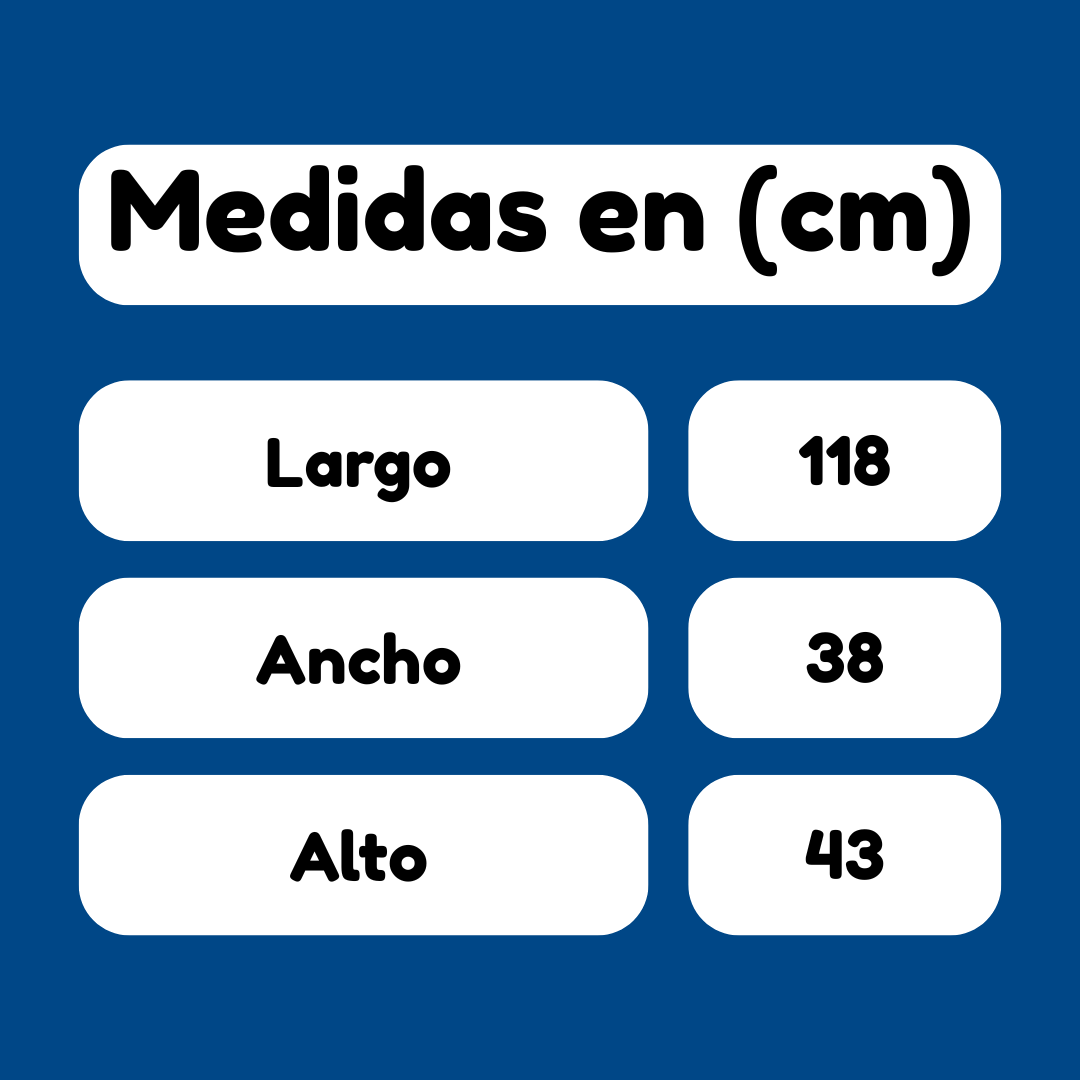 Fabricado en espuma rosada, densidad 26, MDF y pata plástica. Largo: 118 cm, ancho: 38 cm, alto: 43 cm