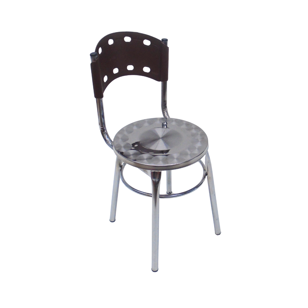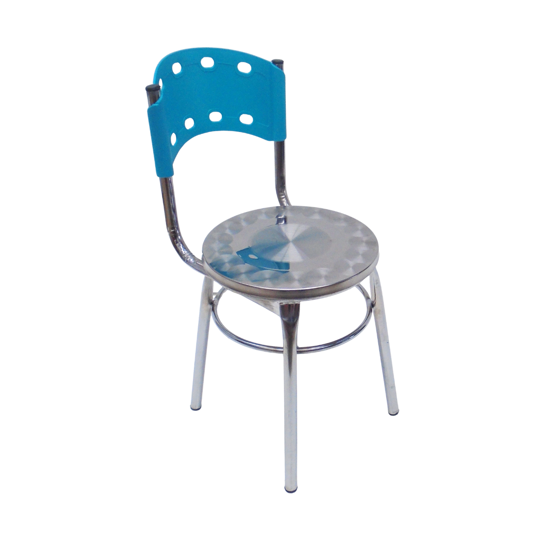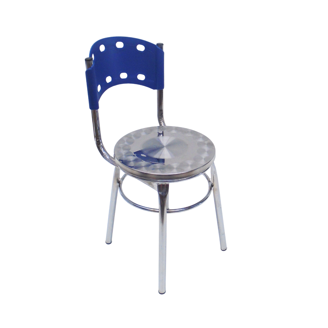 Estructura metálica cromada, sentadero en acero y espaldar en polipropileno, apilable y protegida contra rayos UV