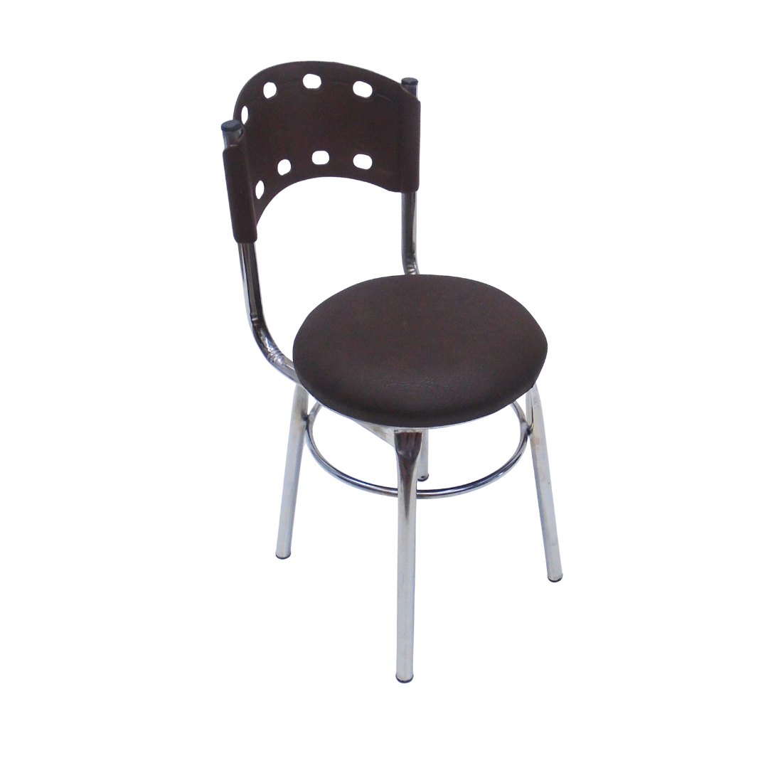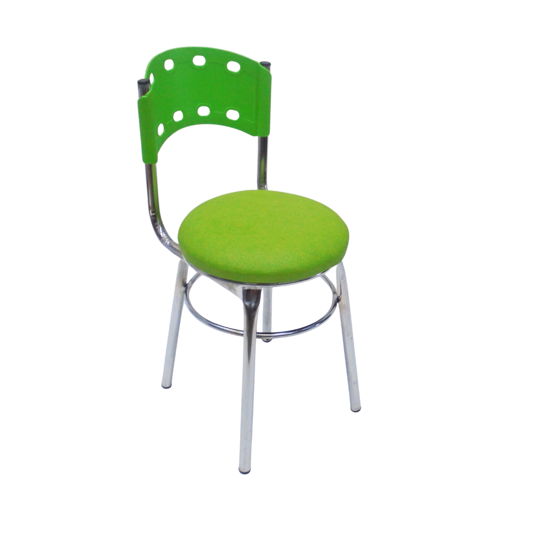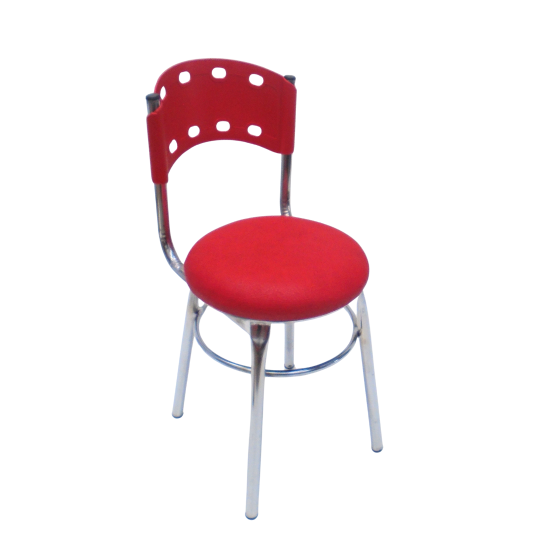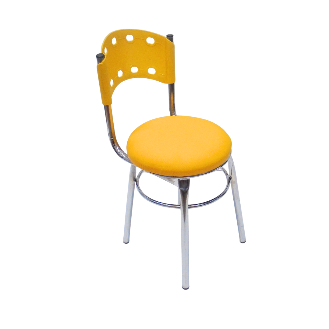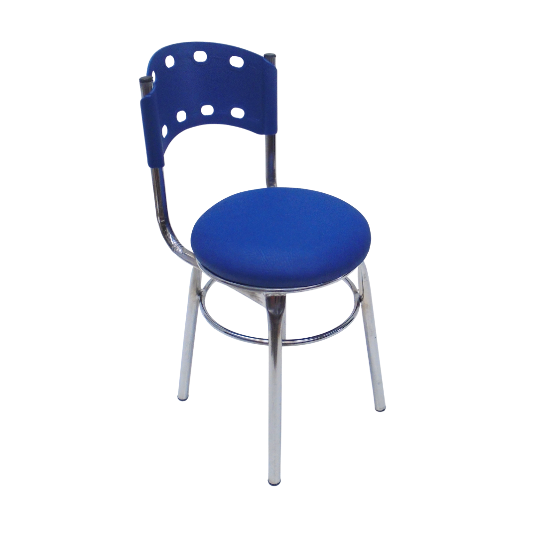 Estructura metálica cromada, sentadero tapizado y espaldar en polipropileno, apilable y protegida contra rayos UV