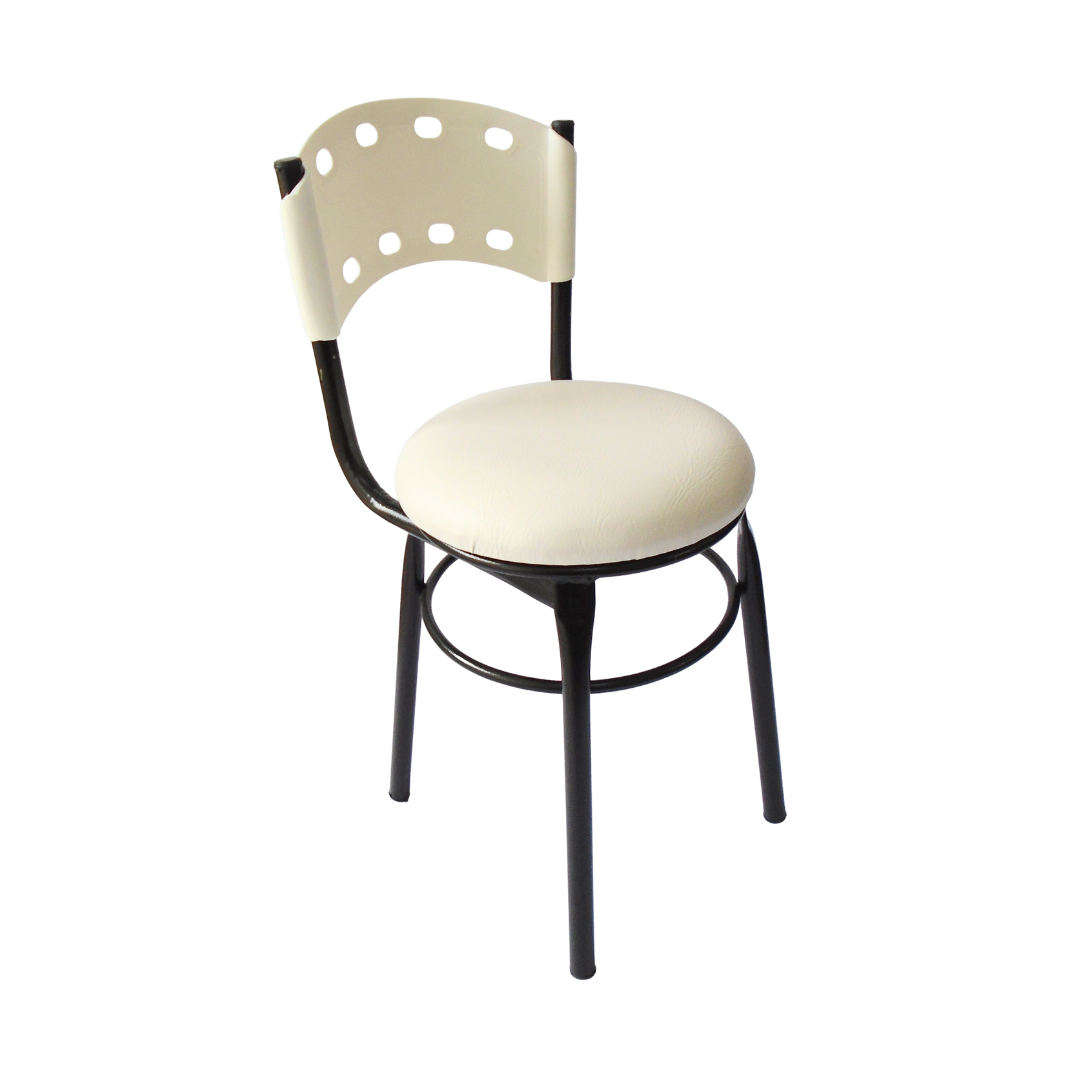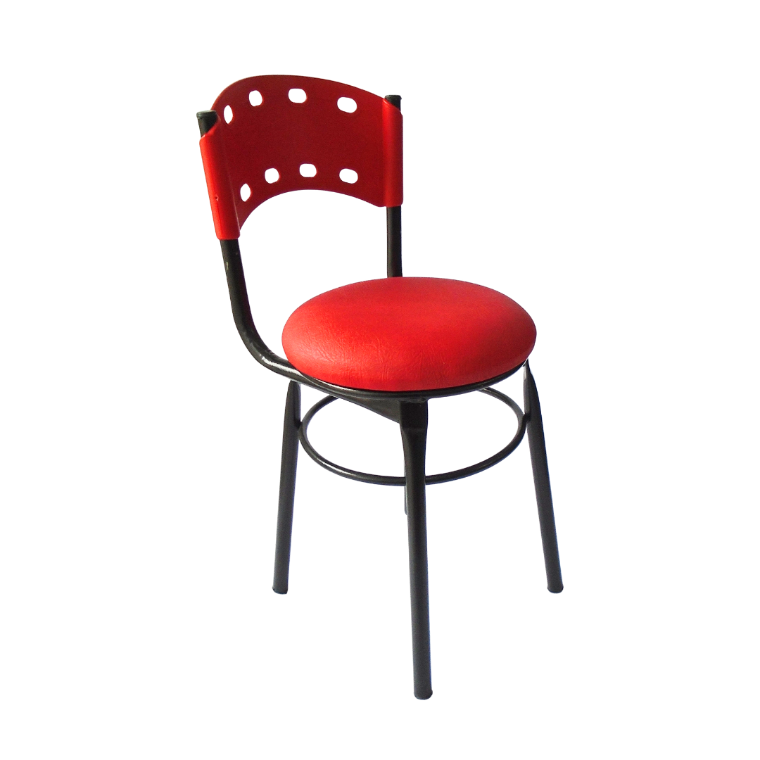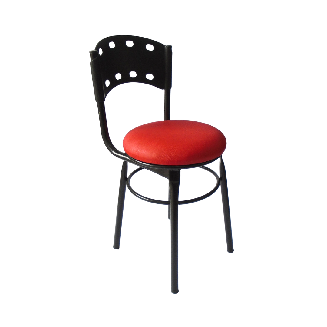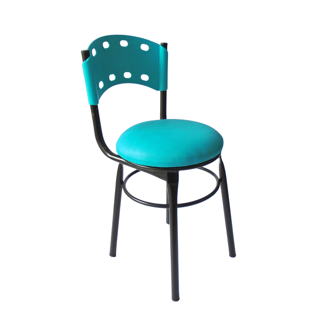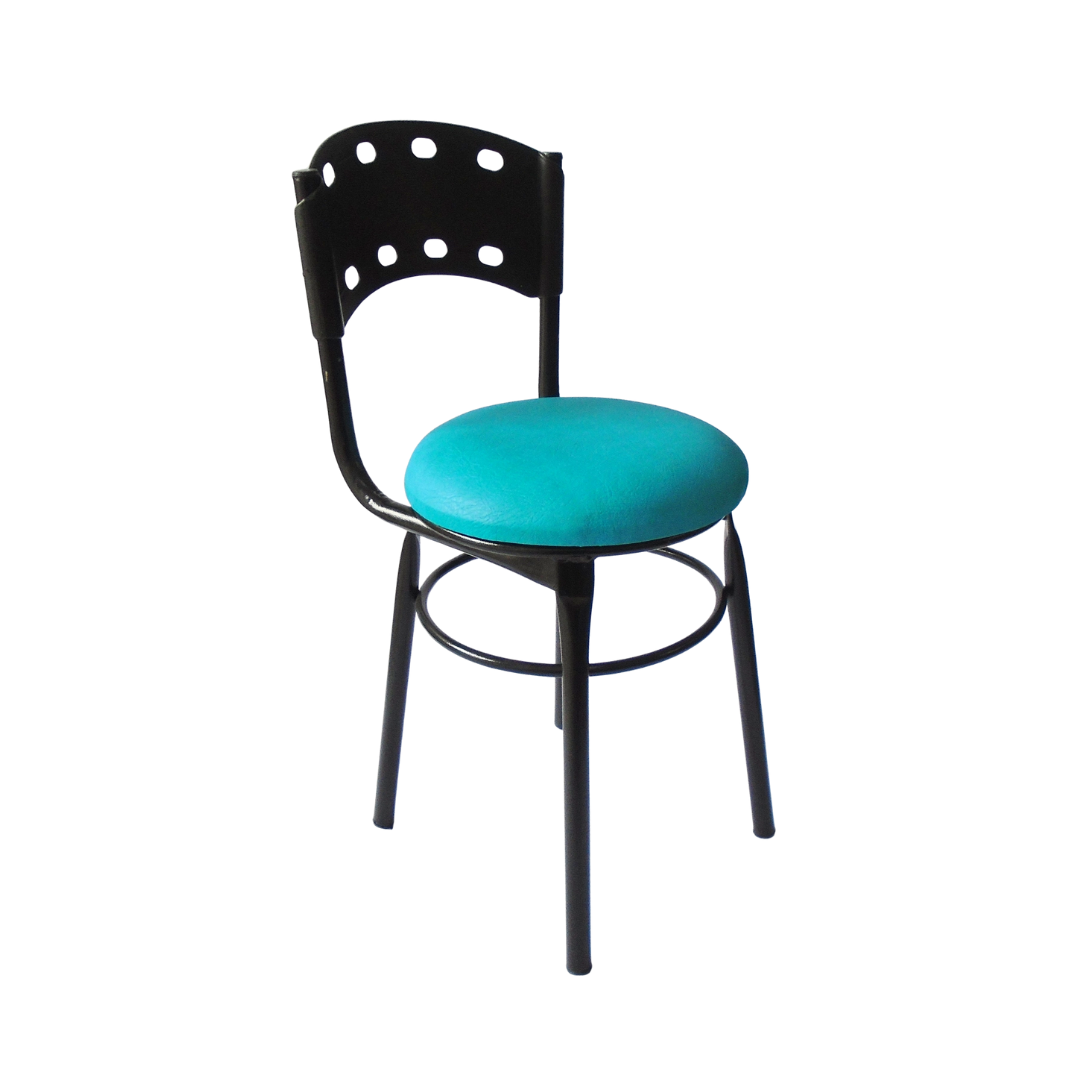 Estructura metálica pintada en color negro, sentadero tapizado y espaldar en polipropileno, apilable y protegida contra rayos UV