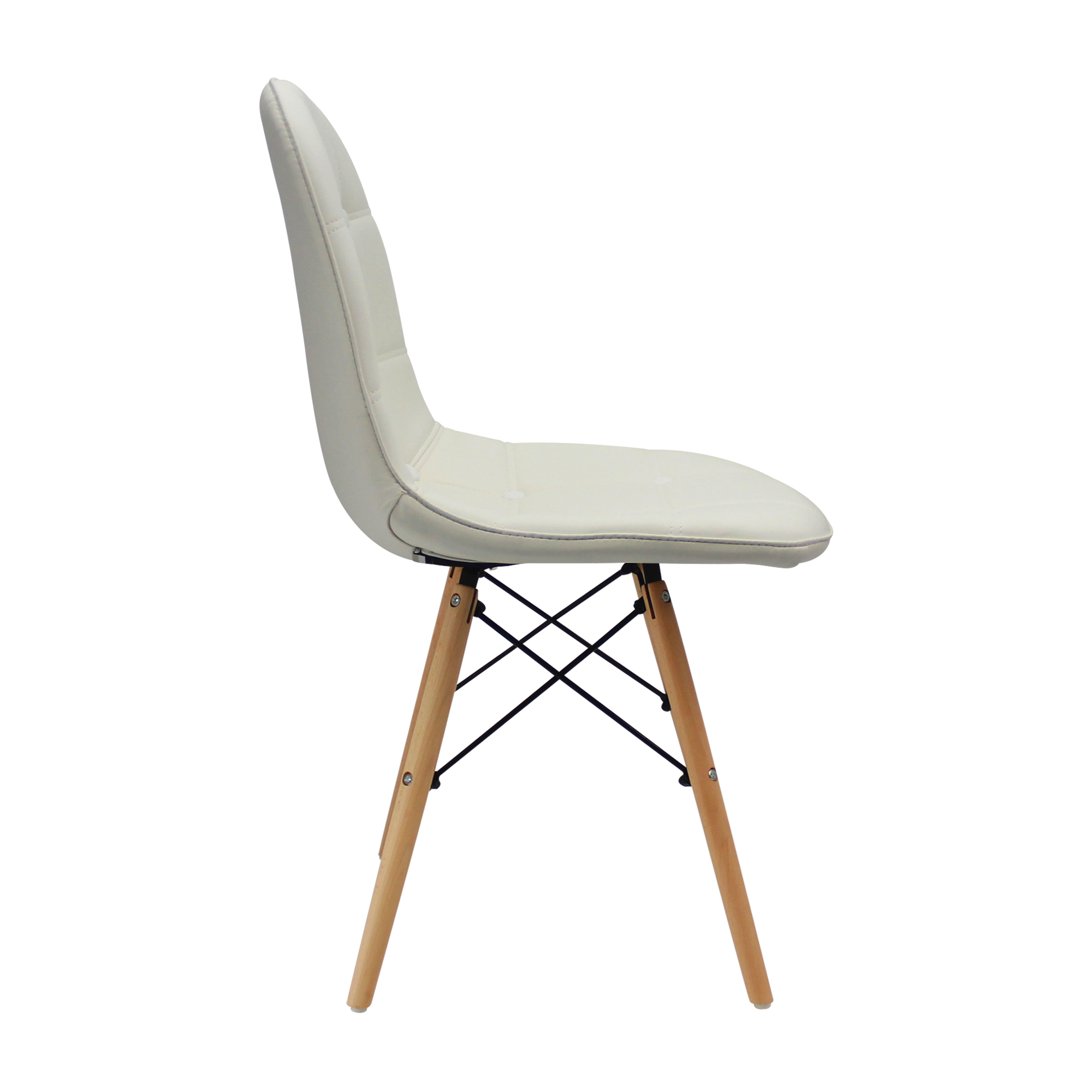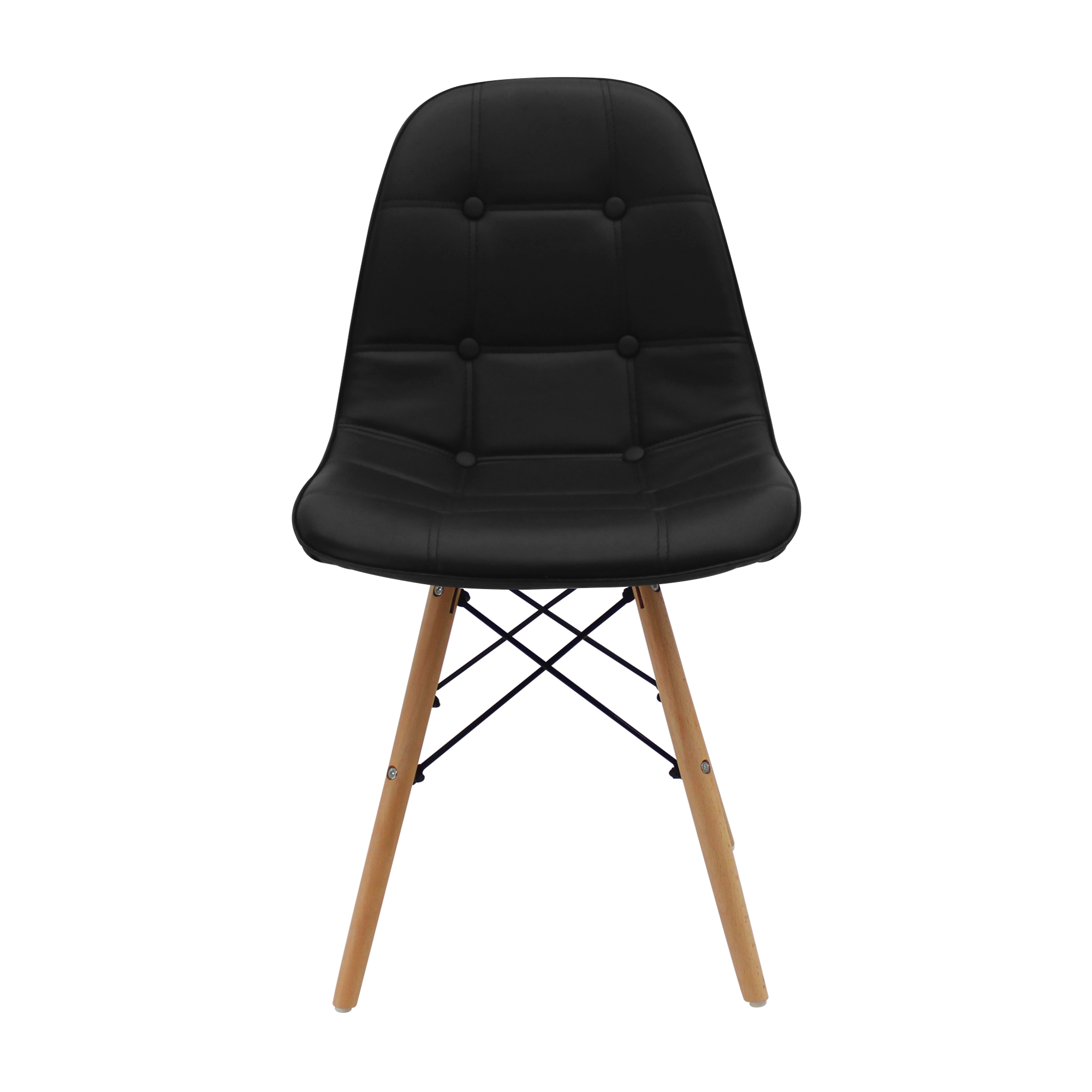 Tapizada en cuero sintético, con patas en madera y refuerzo metálico pintado en negro