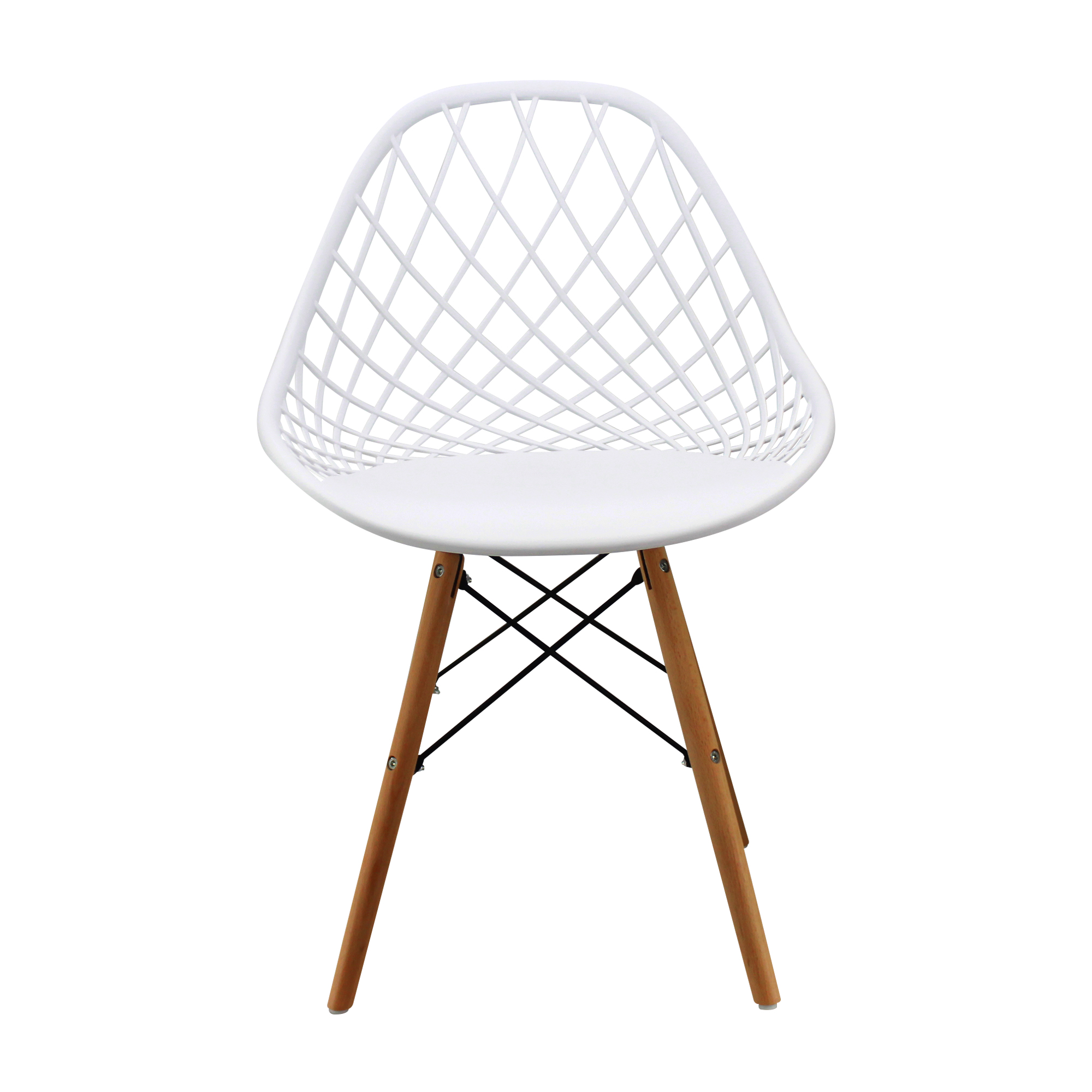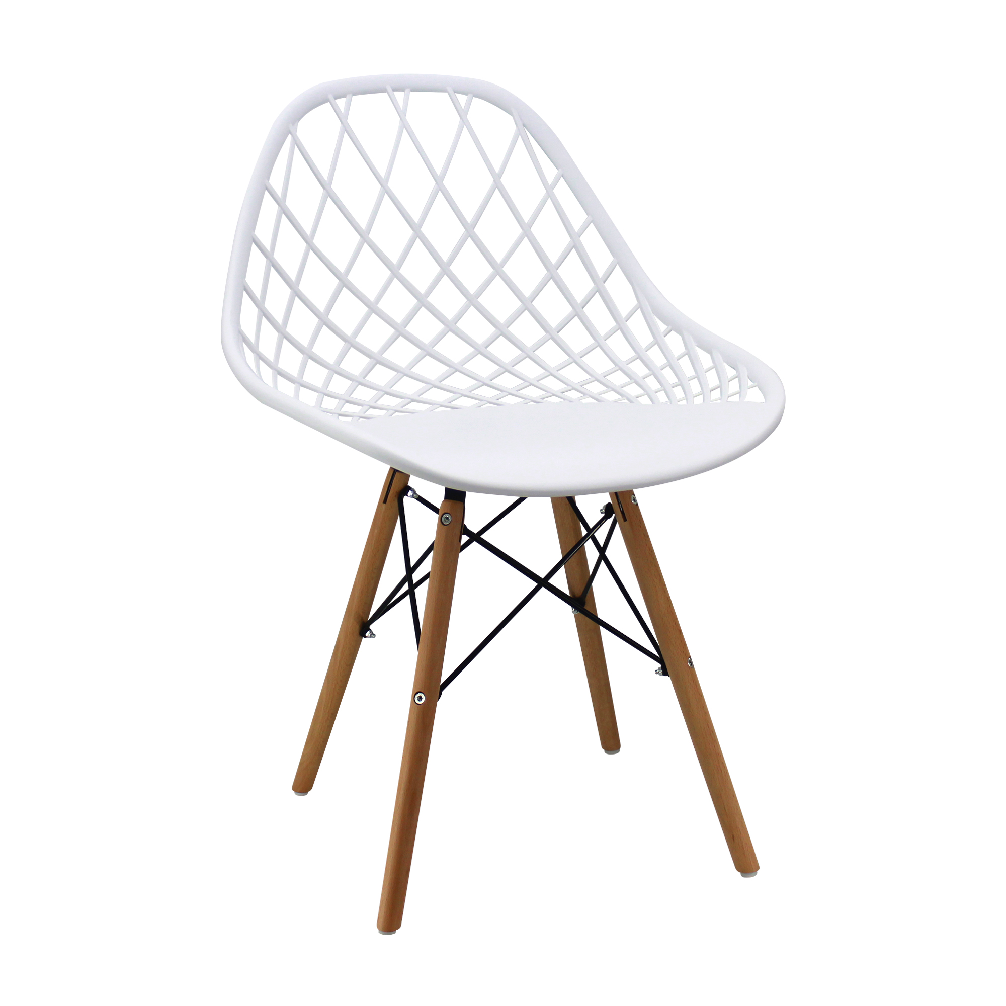 Elaborada en polipropileno de alta resistencia, con patas en madera y refuerzo metálico pintado en negro