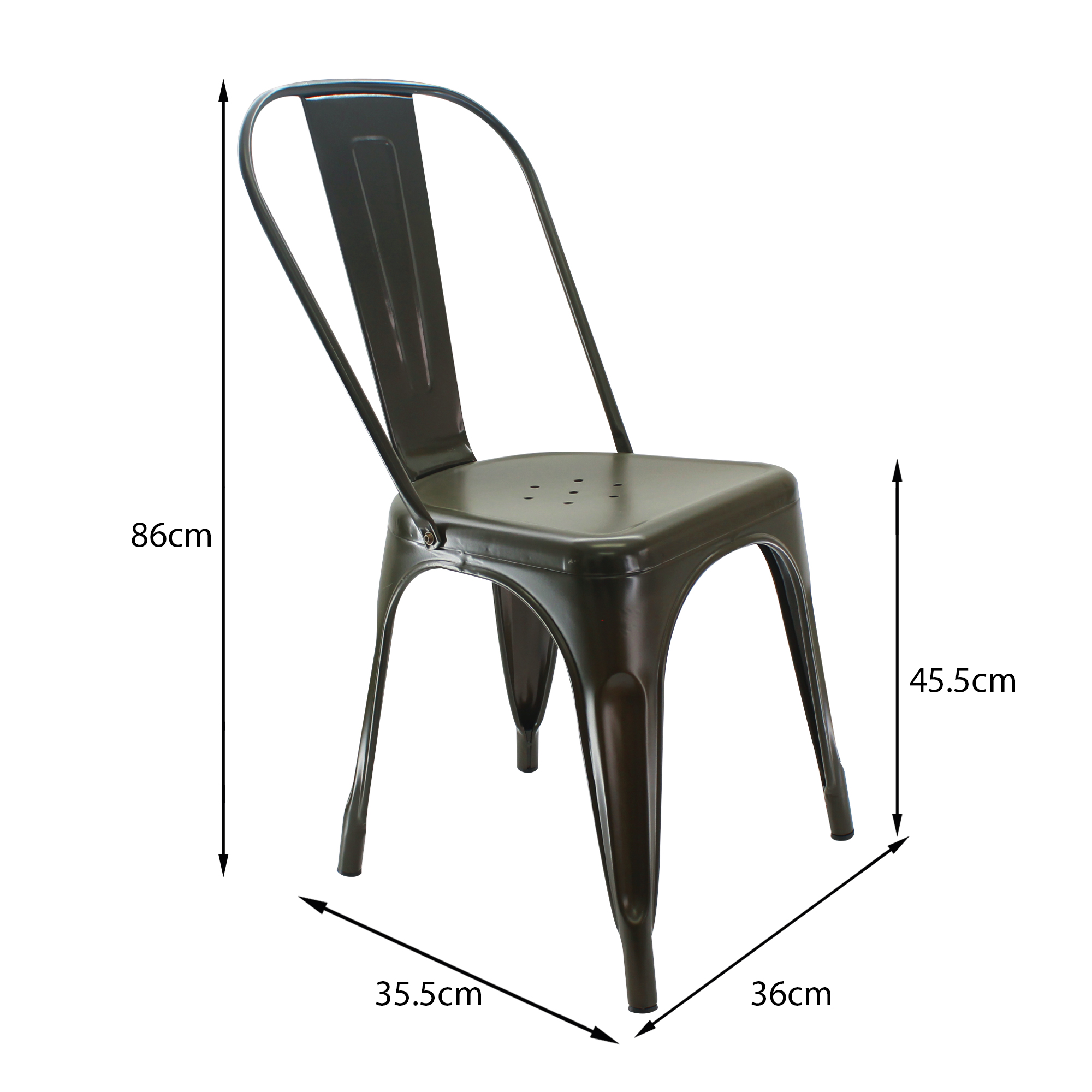 Estructura metálica de alta resistencia, terminación en pintura electrostática, apilable.