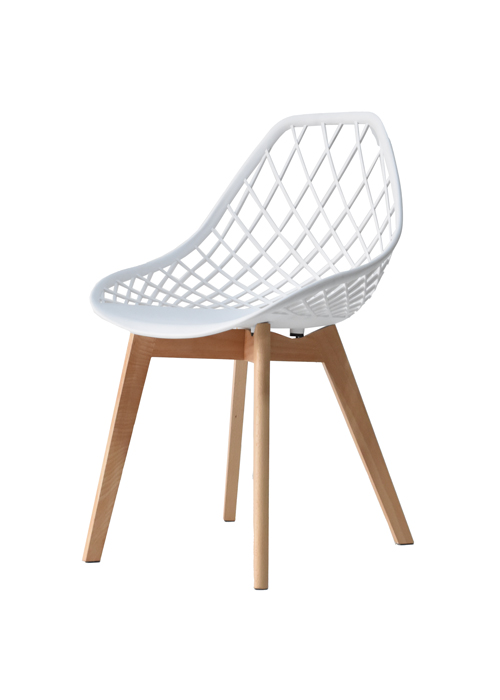 Elaborada en polipropileno de alta resistencia, con patas en madera