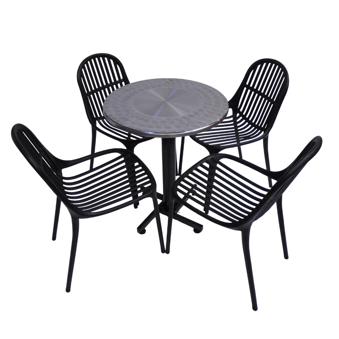 4 Sillas Alteza elaboradas en polipropileno con mesa base cruceta tapa redonda de 60CM forrada en acero