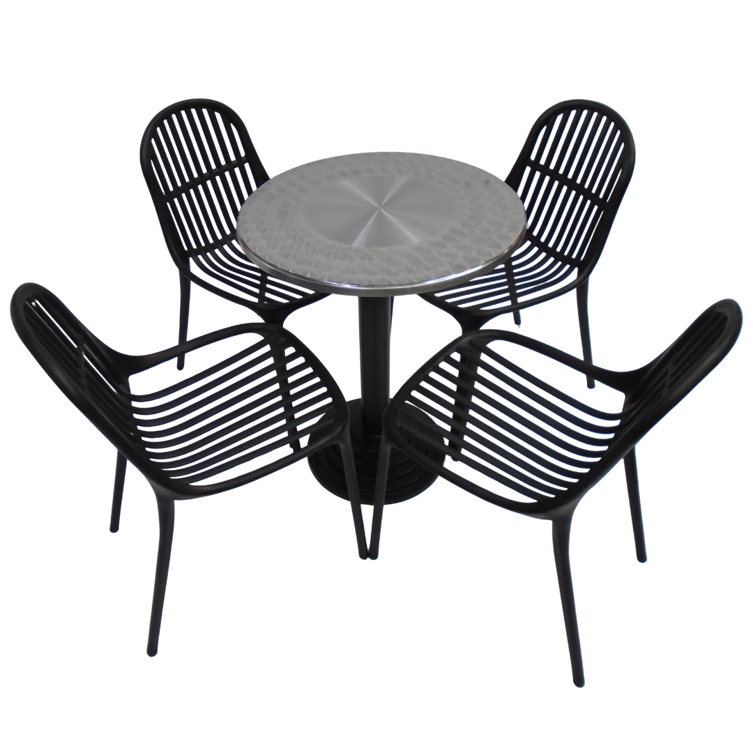 4 Sillas Alteza elaboradas en polipropileno con mesa base disco tapa redonda de 60CM en madera forrada en acero
