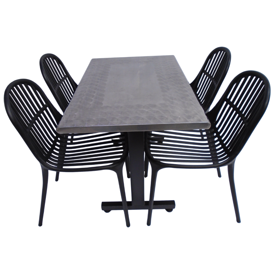 4 Sillas Alteza elaboradas en polipropileno con mesa base H especial tapa en madera forrada en acero de 90x60