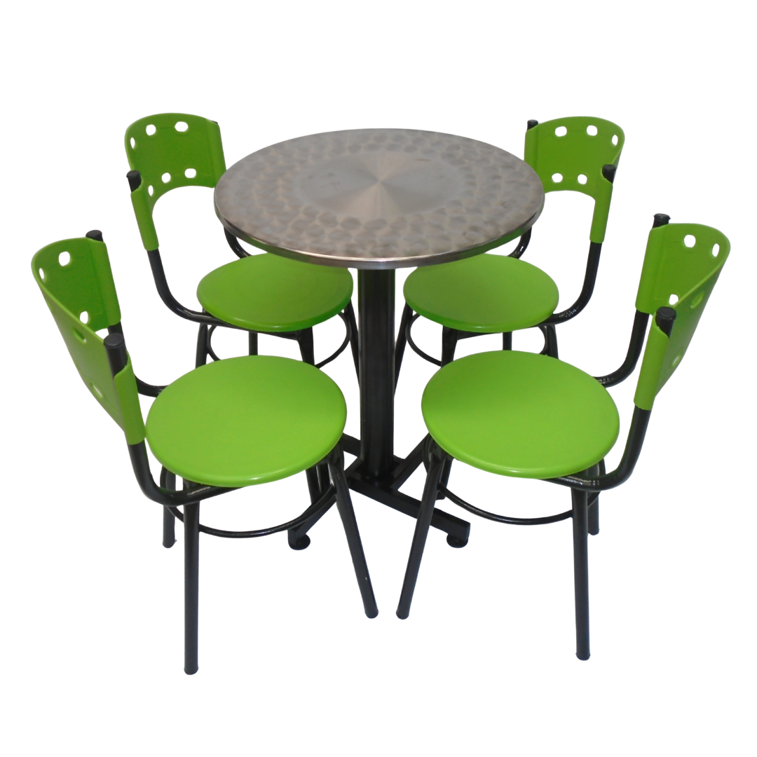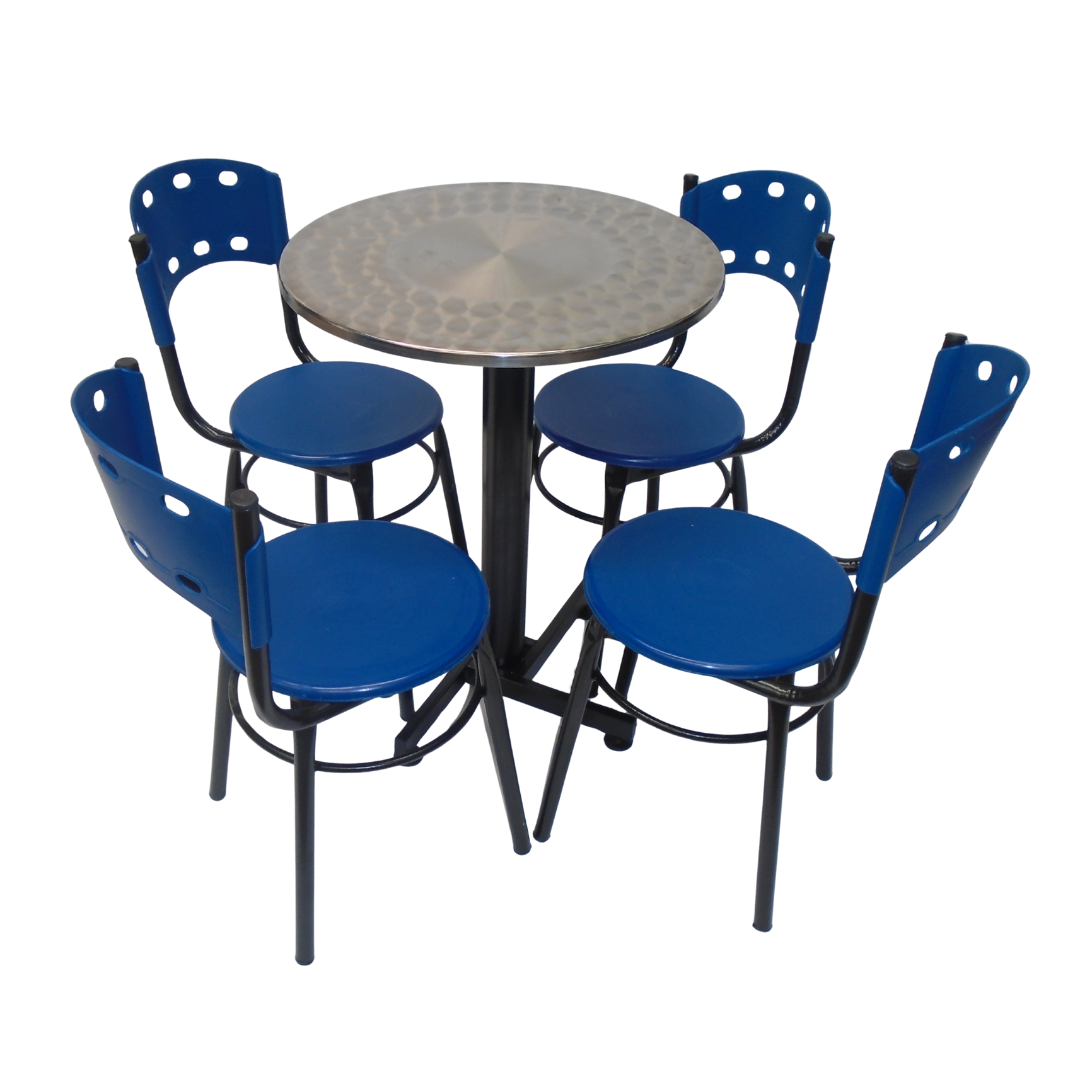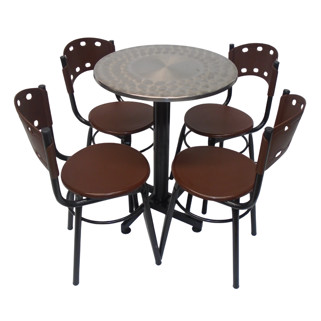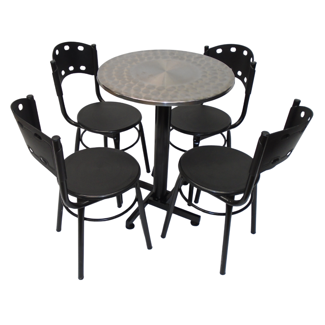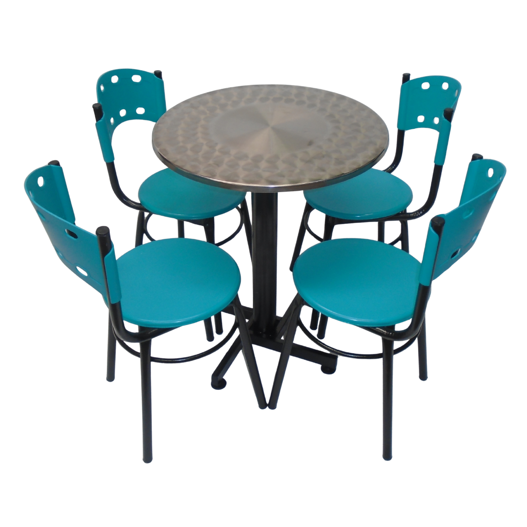 4 Sillas Carla con estructura metálica, sentadero y espaldar en polipropileno y mesa base cruceta con tapa redonda de 60CM en madera forrada en acero
