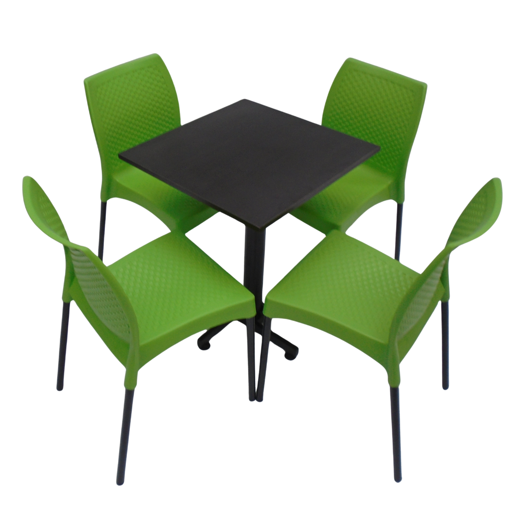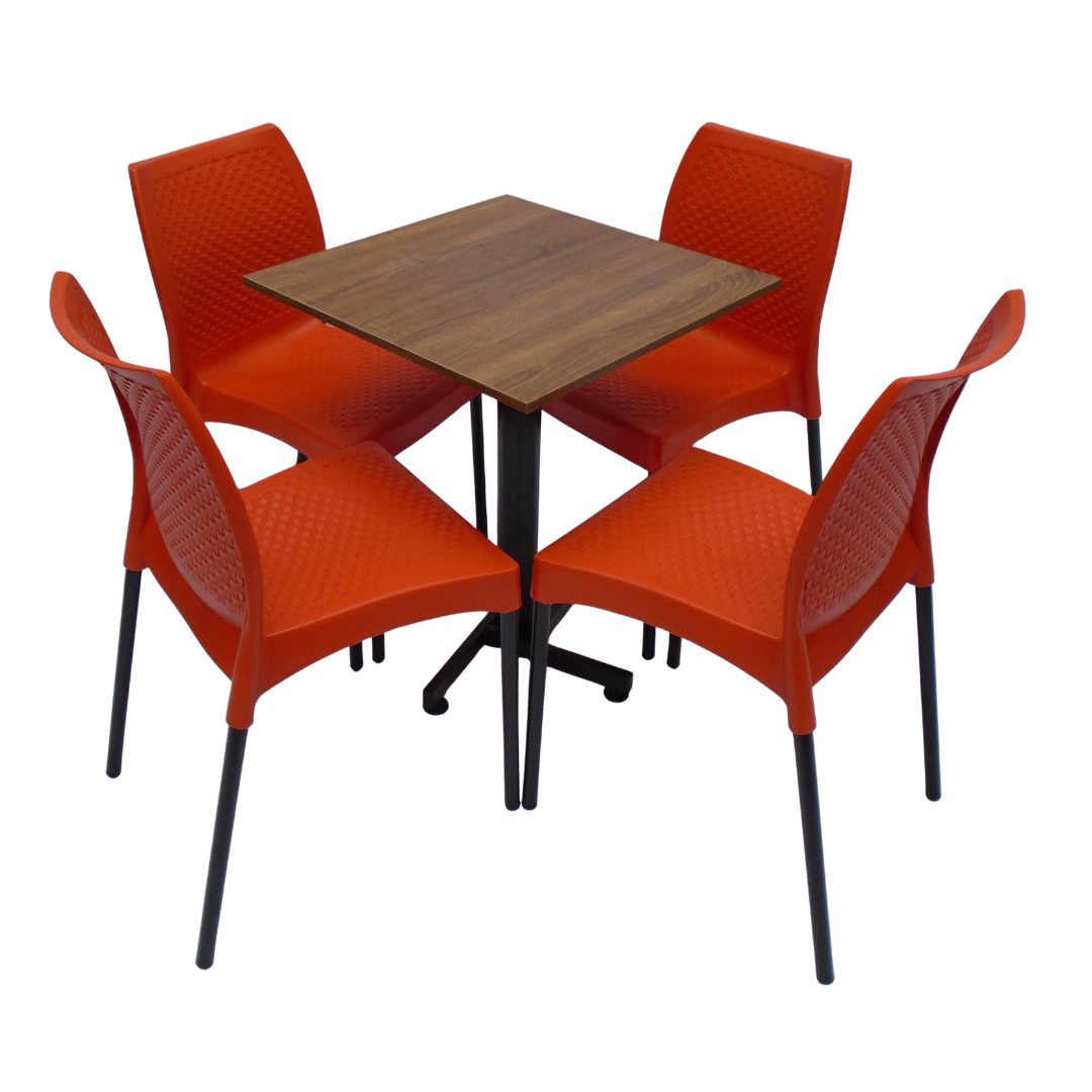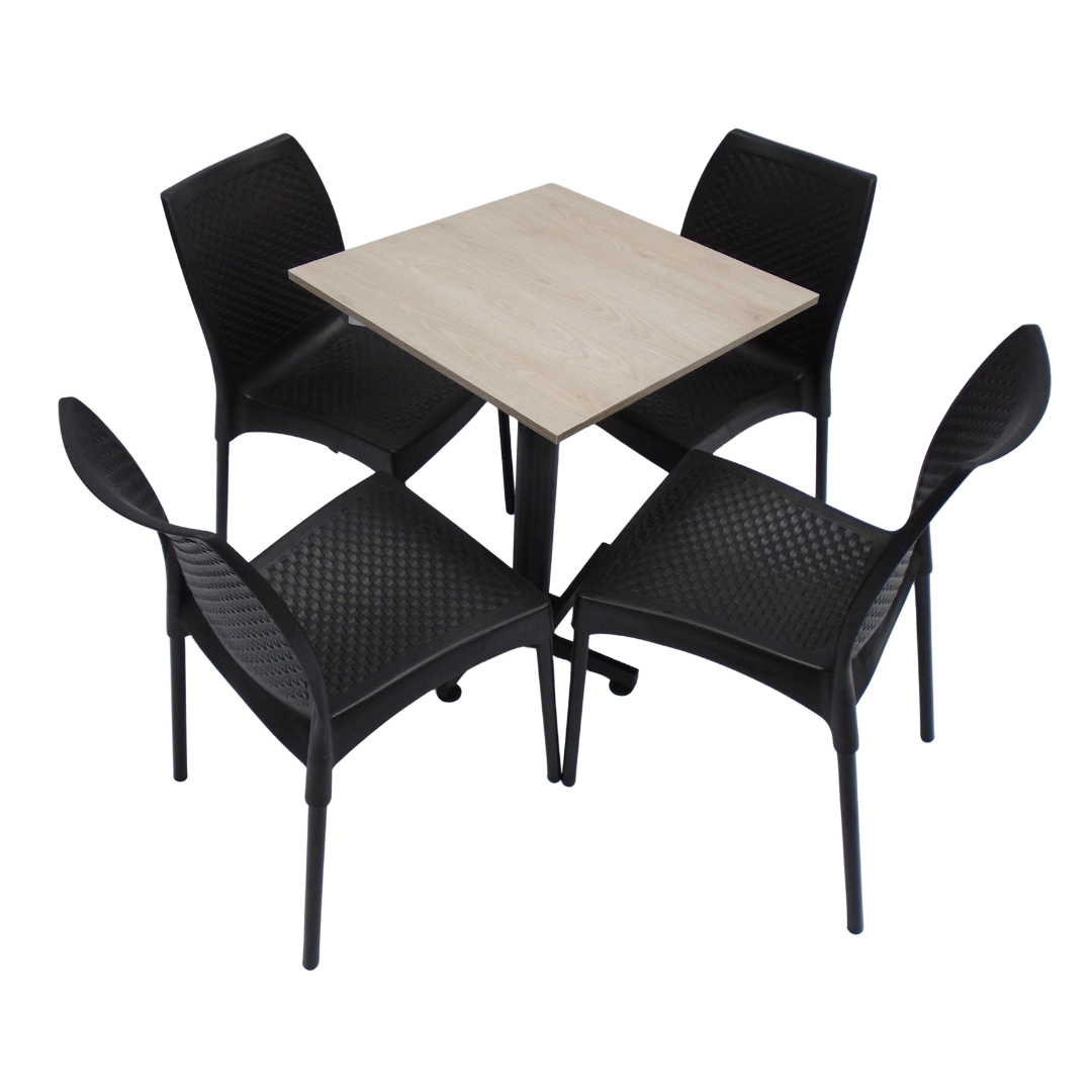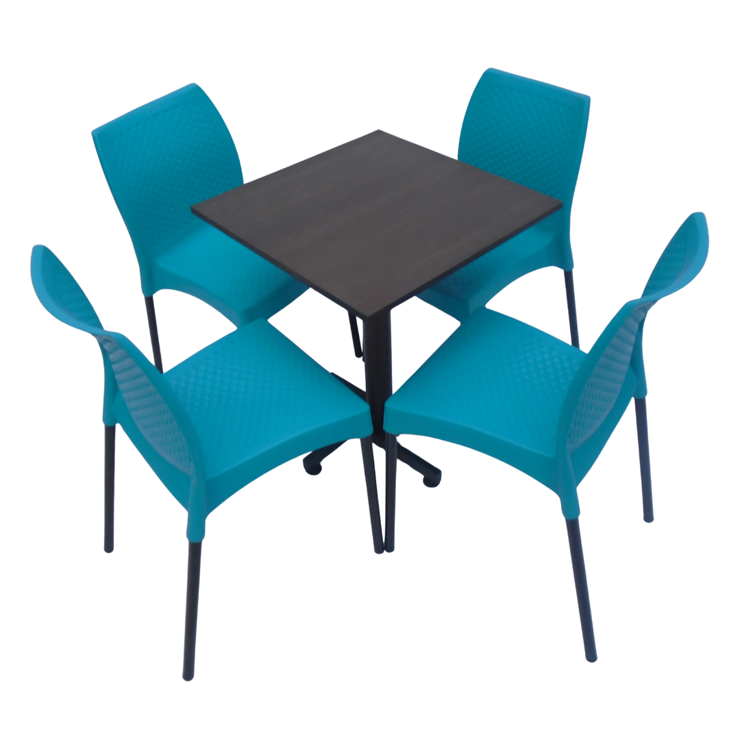 4 Sillas Diseño sin brazo elaboradas en polipropileno con pata metálica y mesa base cruceta tapa en madera forrada en acero de 60x55