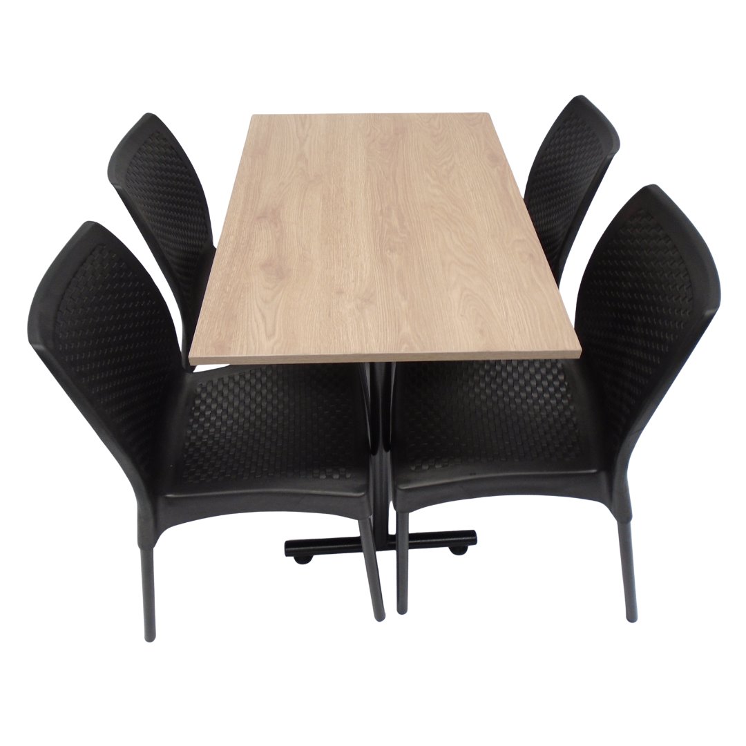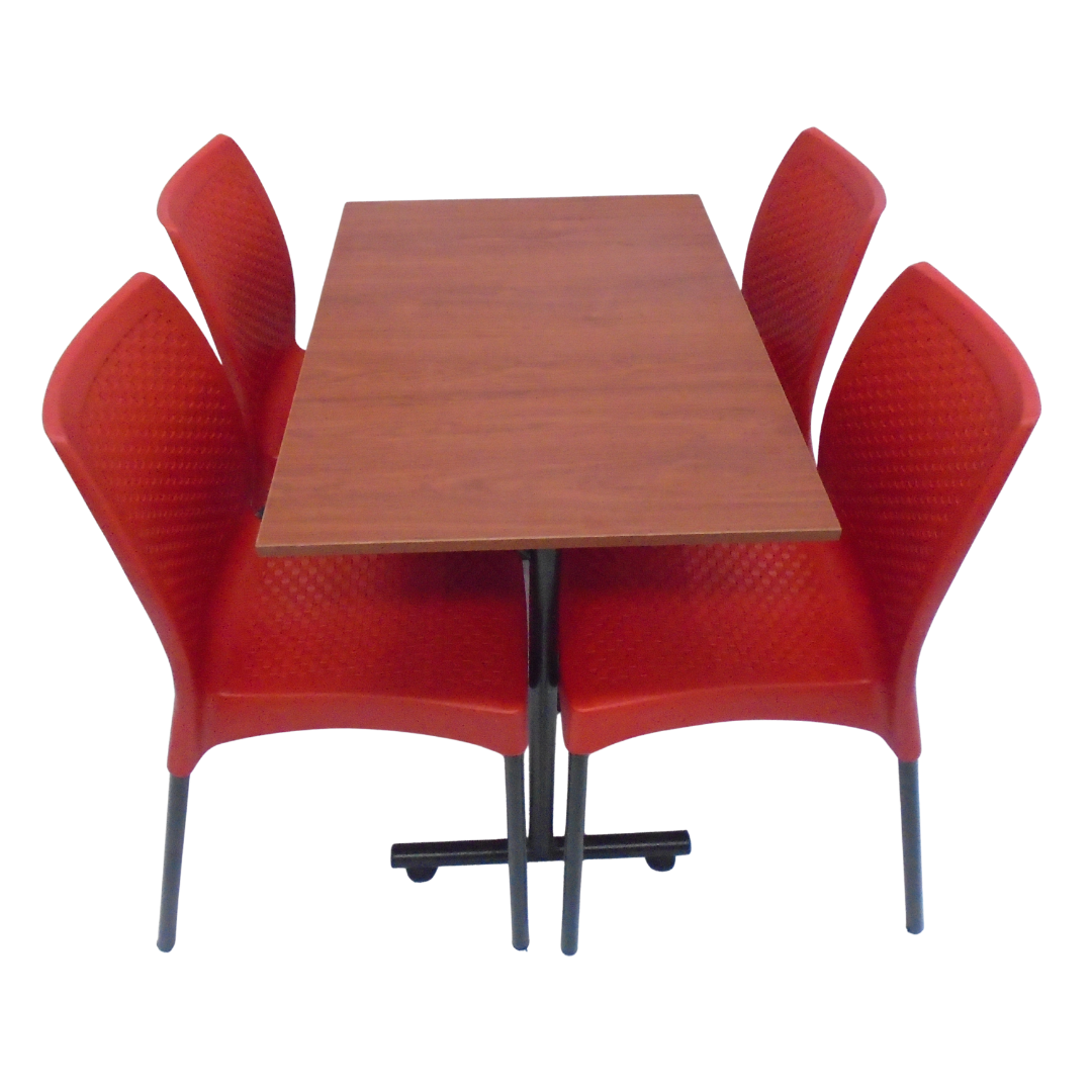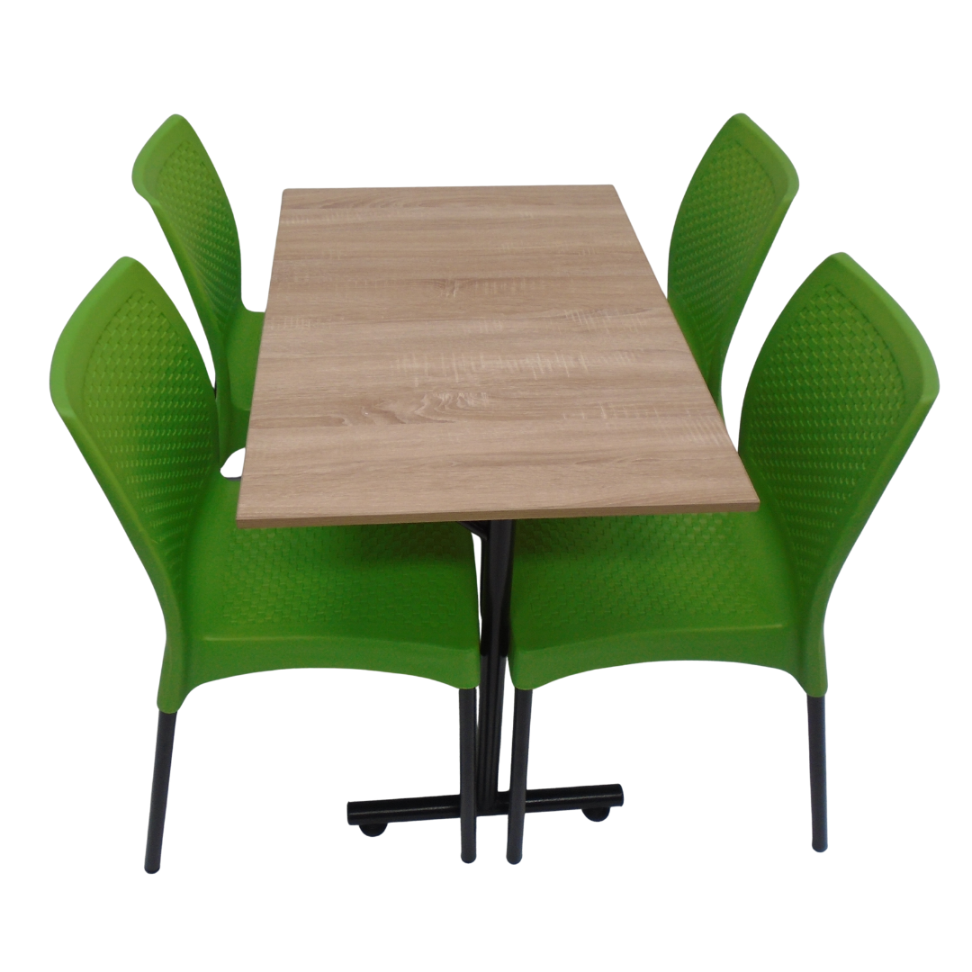 4 Sillas Diseño sin brazo elaboradas en polipropileno con pata metálica y mesa base H especial con tapa en madera de 90x60