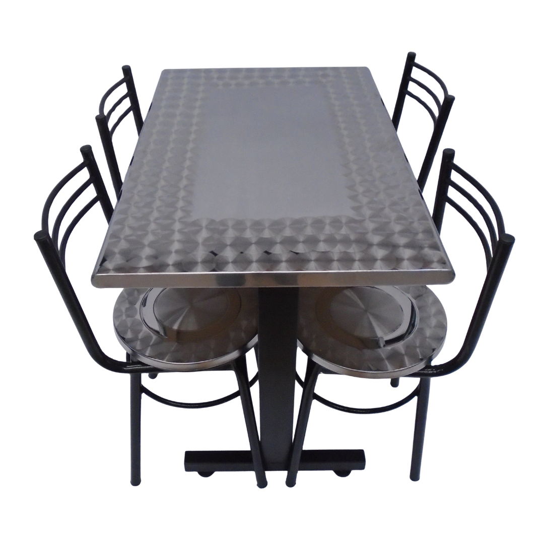 4 Sillas España con estructura metálica, sentadero en acero y mesa base H especial con tapa en madera de 90x60 forrada en acero