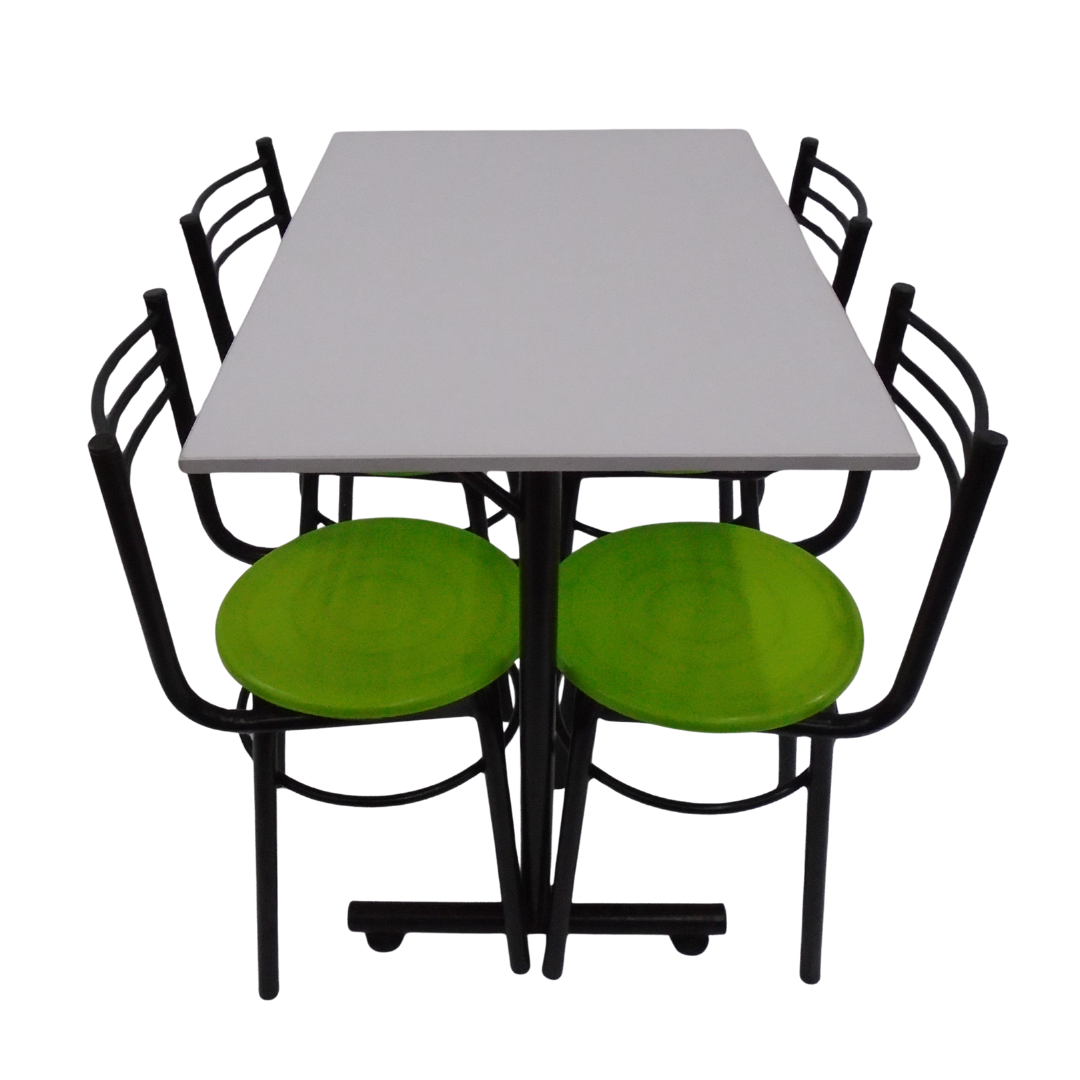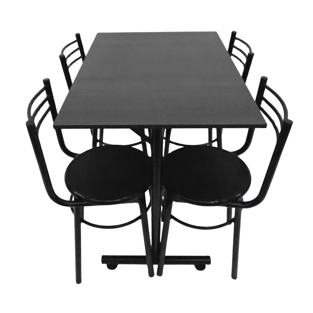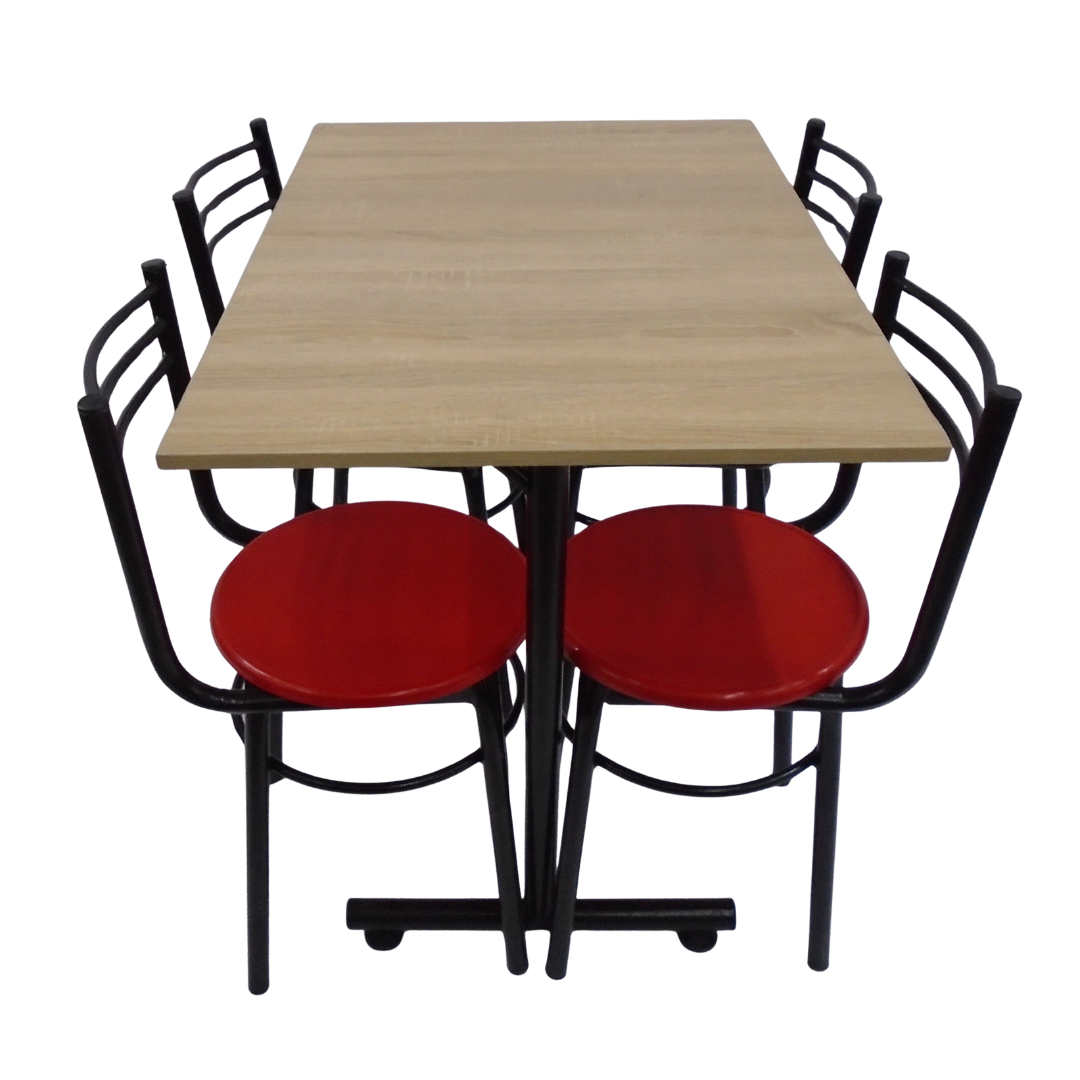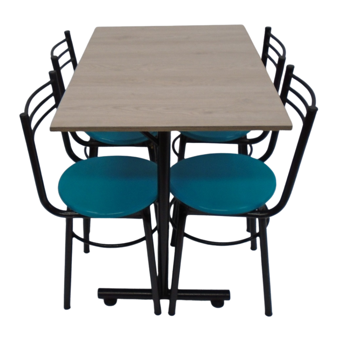 4 Sillas España con estructura metálica, sentadero plastico y mesa base H con tapa en madera de 90x60