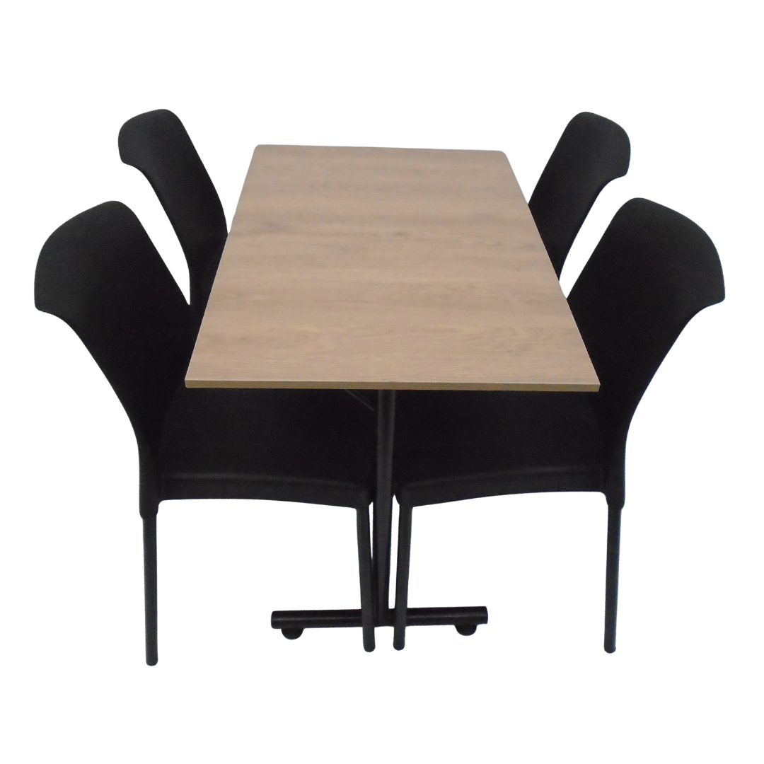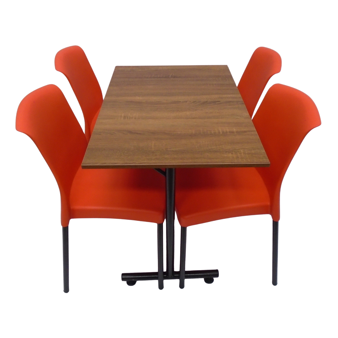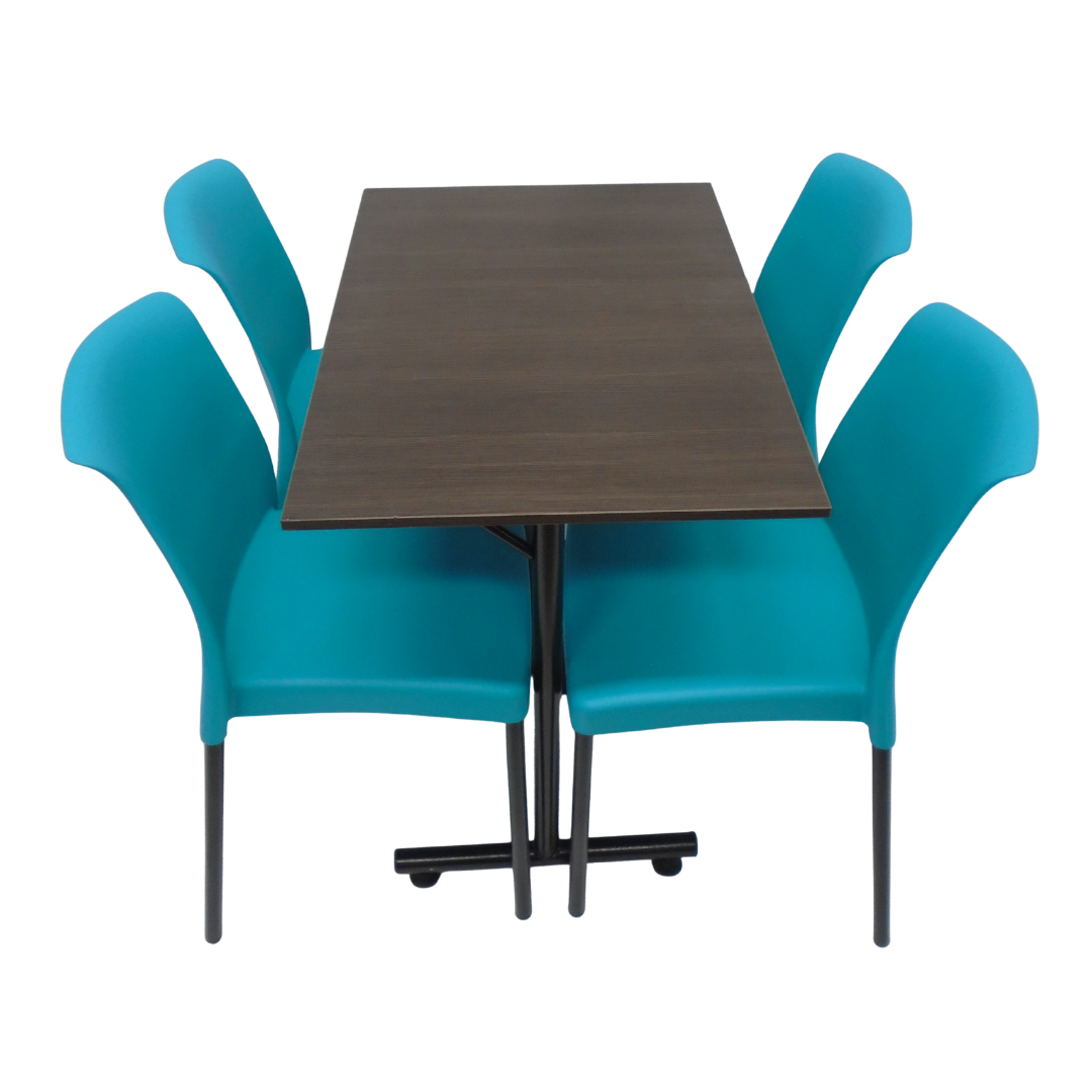 4 Sillas Eva sin brazo elaboradas en polipropileno con pata metálica y mesa base H con tapa en madera de 90x60