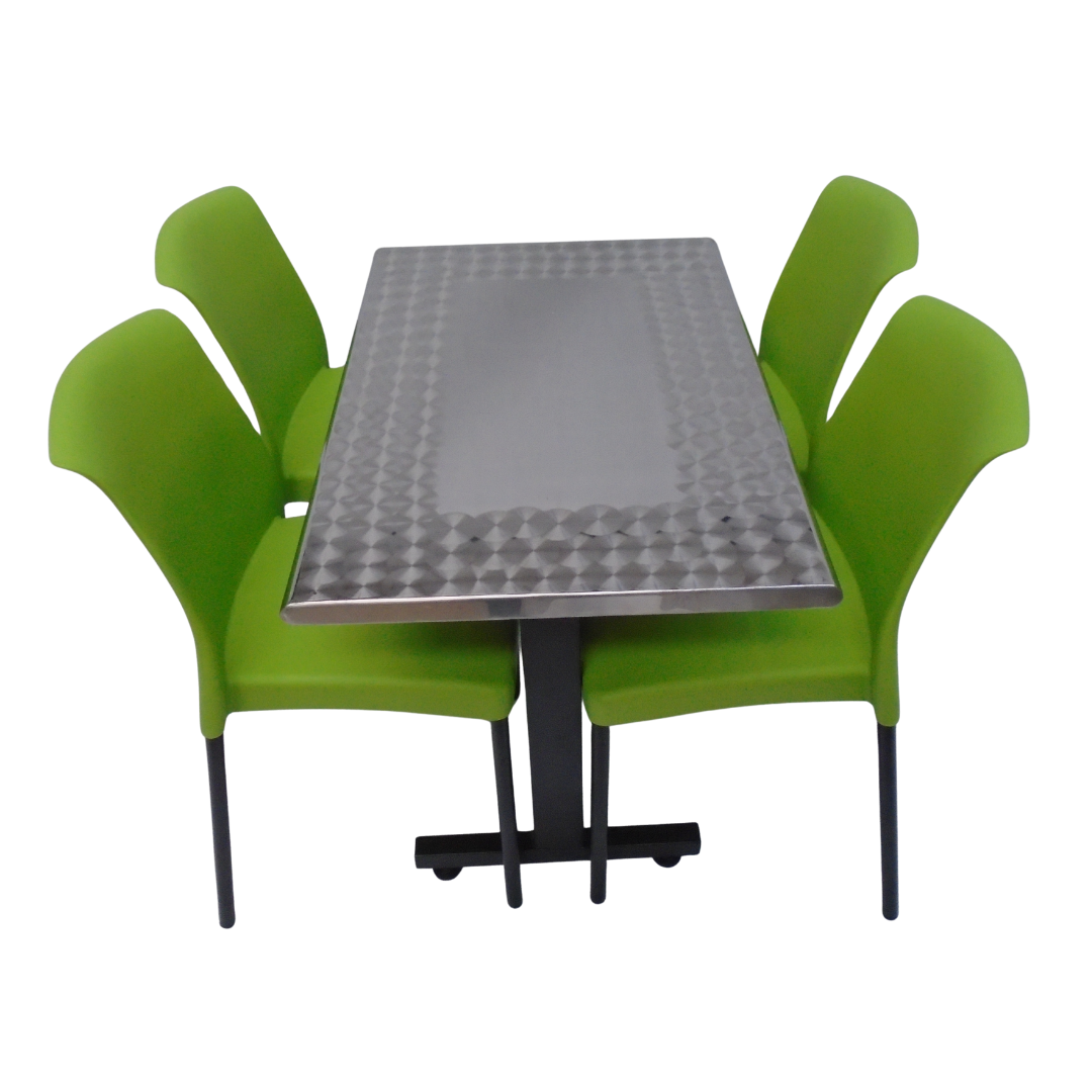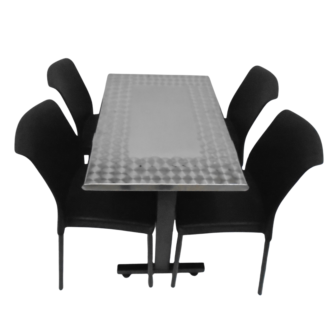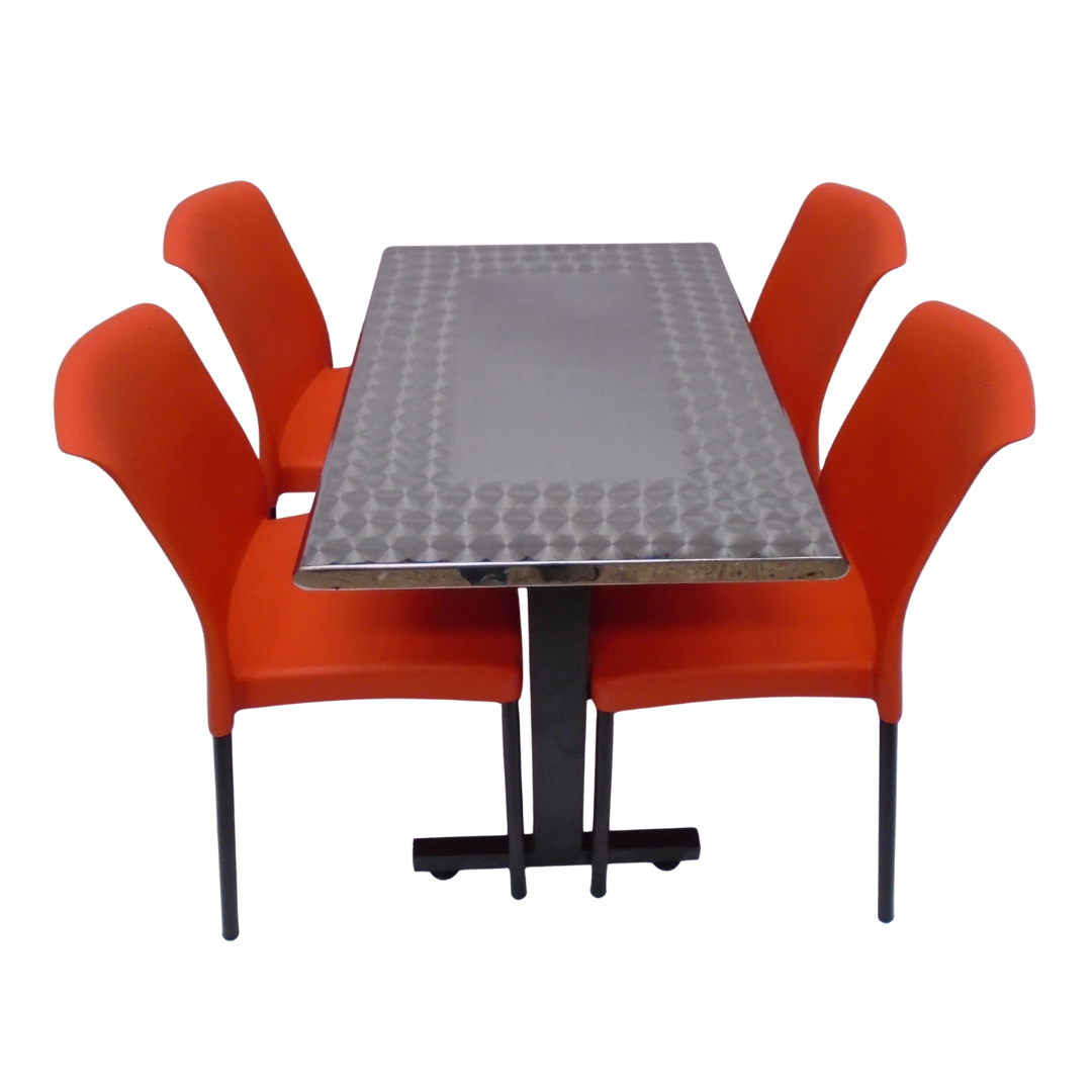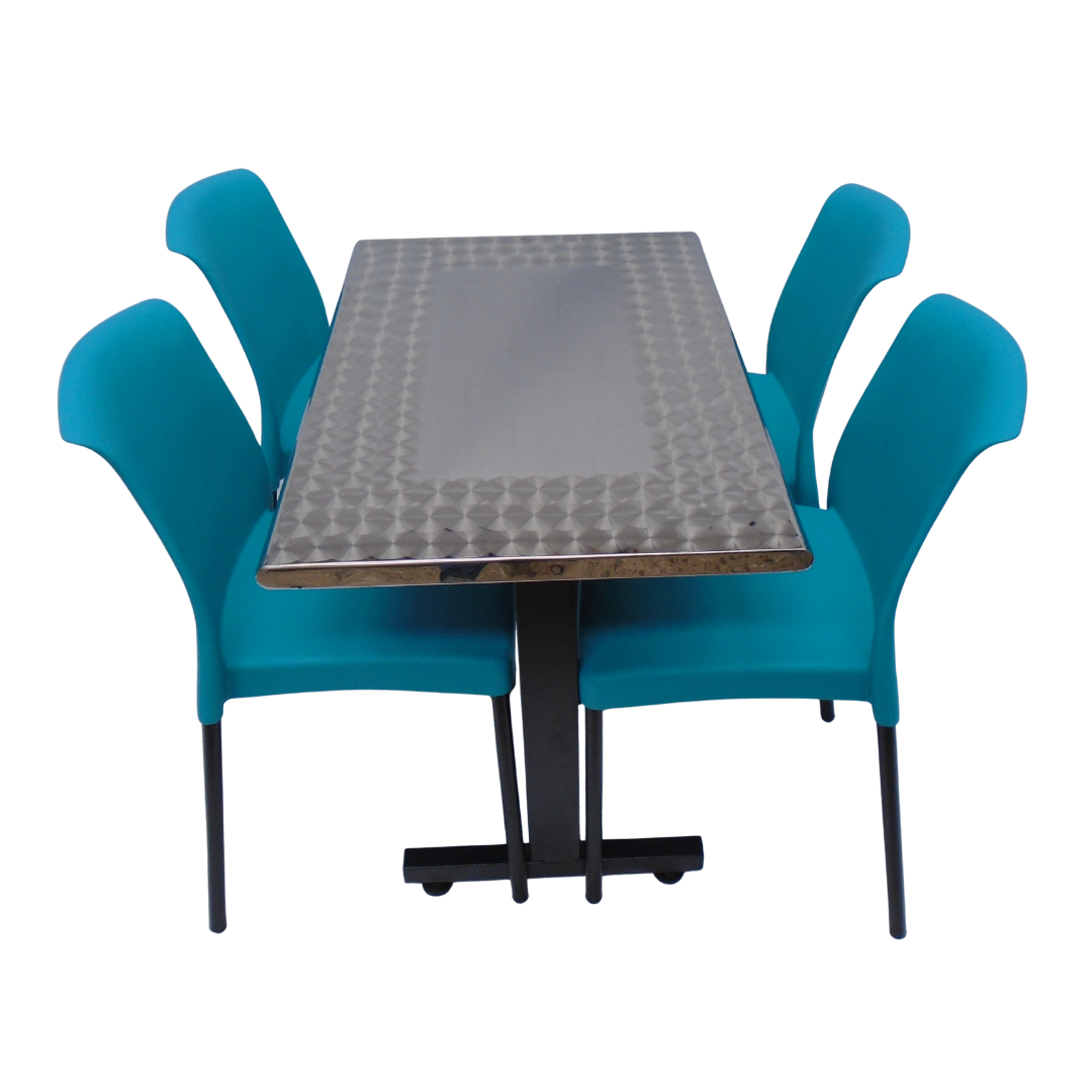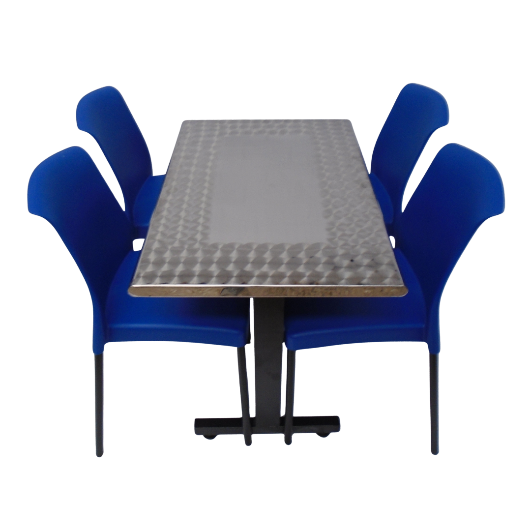 4 Sillas Eva sin brazo elaboradas en polipropileno con pata metálica y mesa base H especial con tapa en madera forrada en acero de 90x60
