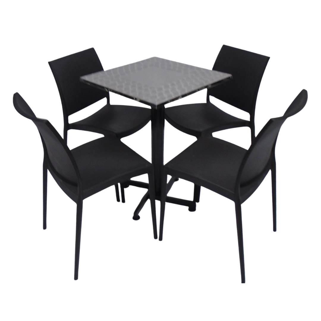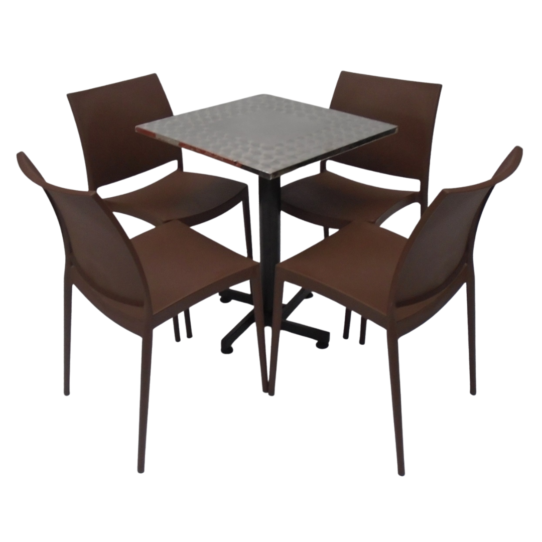 4 Sillas Mágica elaboradas en polipropileno con mesa base cruceta tapa en madera de 60x55 forrada en acero