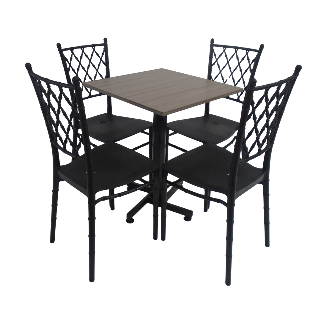 4 Sillas Tifany elaboradas en polipropileno con mesa base cruceta tapa en madera de 60x60