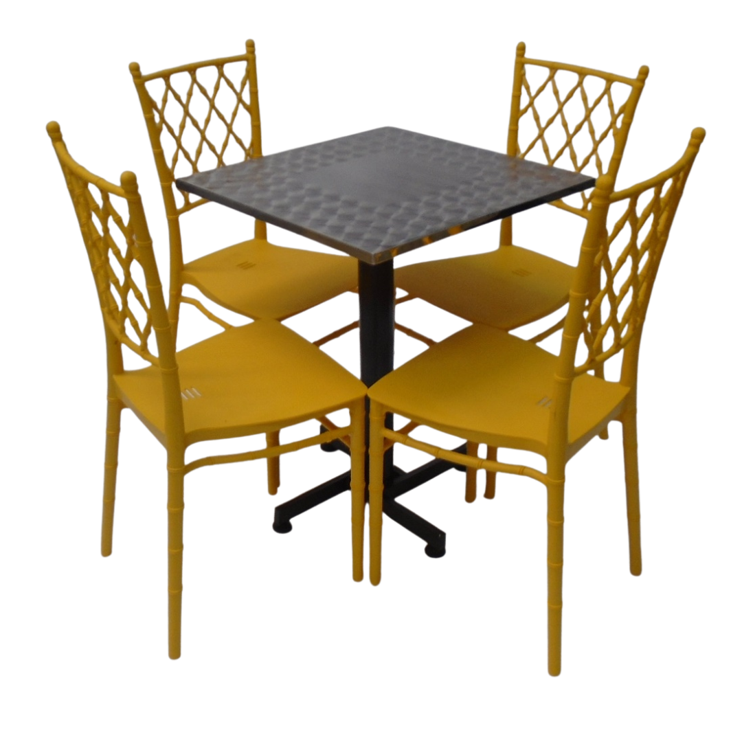 4 Sillas Tifany elaboradas en polipropileno con mesa base cruceta tapa en madera de 60x55 forrada en acero