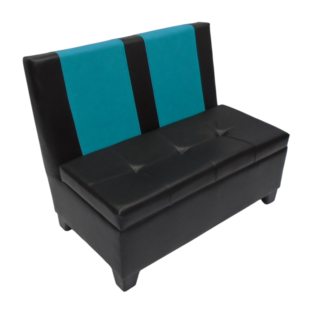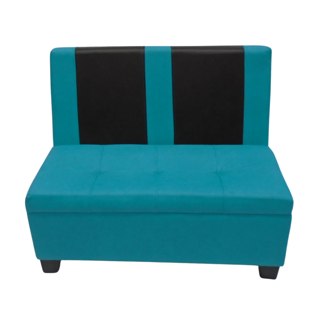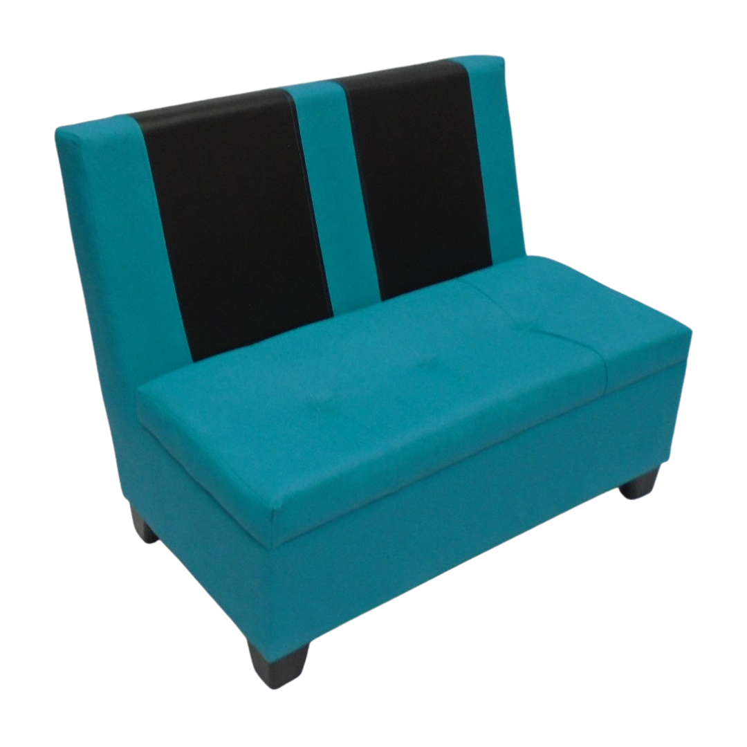 Fabricado en espuma rosada, densidad 26, madera sajo y pata metálica o plástica en l. Largo 100 cm, ancho 60 cm, alto sentadero 45 cm, alto espaldar 80 cm