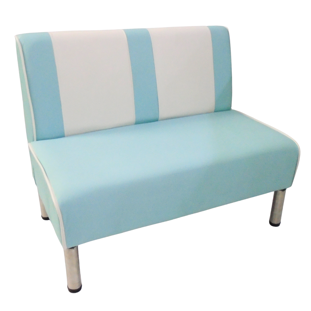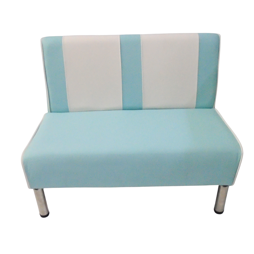 Fabricado en espuma rosada, densidad 26, madera sajo y pata metálica o plástica en L. Largo 100 cm, ancho 60 cm, alto sentadero 45 cm, alto espaldar 80 cm